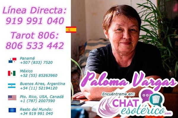 La experta Paloma Vargas, te recomienda visitar su perfil en la web del chatesoterico.com, donde encontrarás información más directa de ella. Comunícate y chatea con esta médium; así conocerás los beneficios que tendrá para ti. Sus aciertos con fechas y datos exactos, es lo que ha hecho importante a esta médium, como la mejor del país. Todos sus clientes aseguran que ella es la más fiable, sincera y que te brinda soluciones inmediatas. Si sientes que tus problemas te atormentan, sólo deja todos en sus manos; sólo solicita tu consulta y en breve tu vida cambiará.
