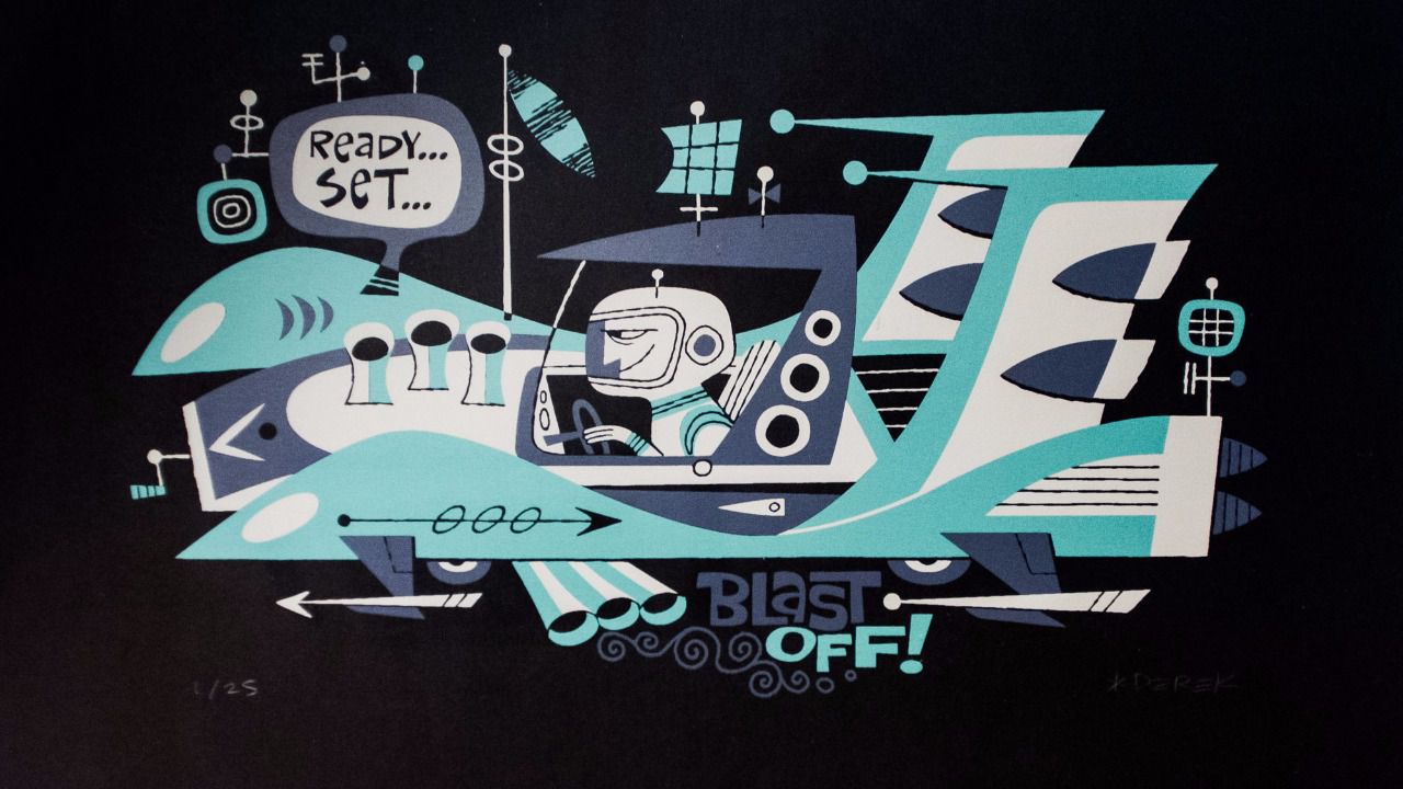 Figuras angulosas que producen movimiento, colores contrastados para captar la atención y una temática 'vintage' que sigue encantando hoy por hoy. El ilustrador estadounidense Derek Yaniger, nacido en Arkansas hace 56 años, expone por primera vez su obra en España y lo hace en la galería La Fiambrera de Madrid, en Malasaña, desde este viernes y hasta el próximo 4 de junio.