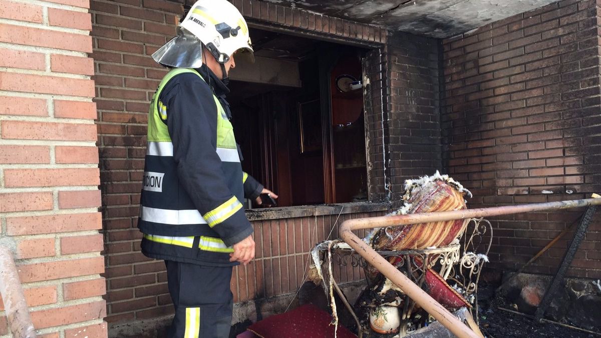 Bombero en una de las viviendas afectadas por el incendio (Foto: Emergencias 112)