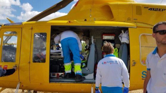 Los sanitarios del Summa-112 que se trasladaron al lugar tras el aviso comprobaron que la mujer importantes heridas en la cabeza, incluido un scalp, en el antebrazo, en la zona torácica y en la abdominal. Fue trasladada por el segundo helicóptero del Summa al Hospital de la Paz de Madrid, donde ha ingresado con pronóstico grave.
