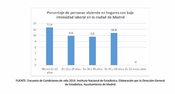 En la ciudad de Madrid, el porcentaje de menores que viven en hogares de baja intensidad laboral es del 12,6 por ciento muy superior a otros grupos de edades.
