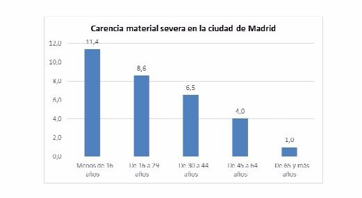 Por otro lado, la carencia material severa afecta al 11,4 por ciento de los menores de 16 años, prevalencia muy superior a la encontrada en otros grupos de edad.