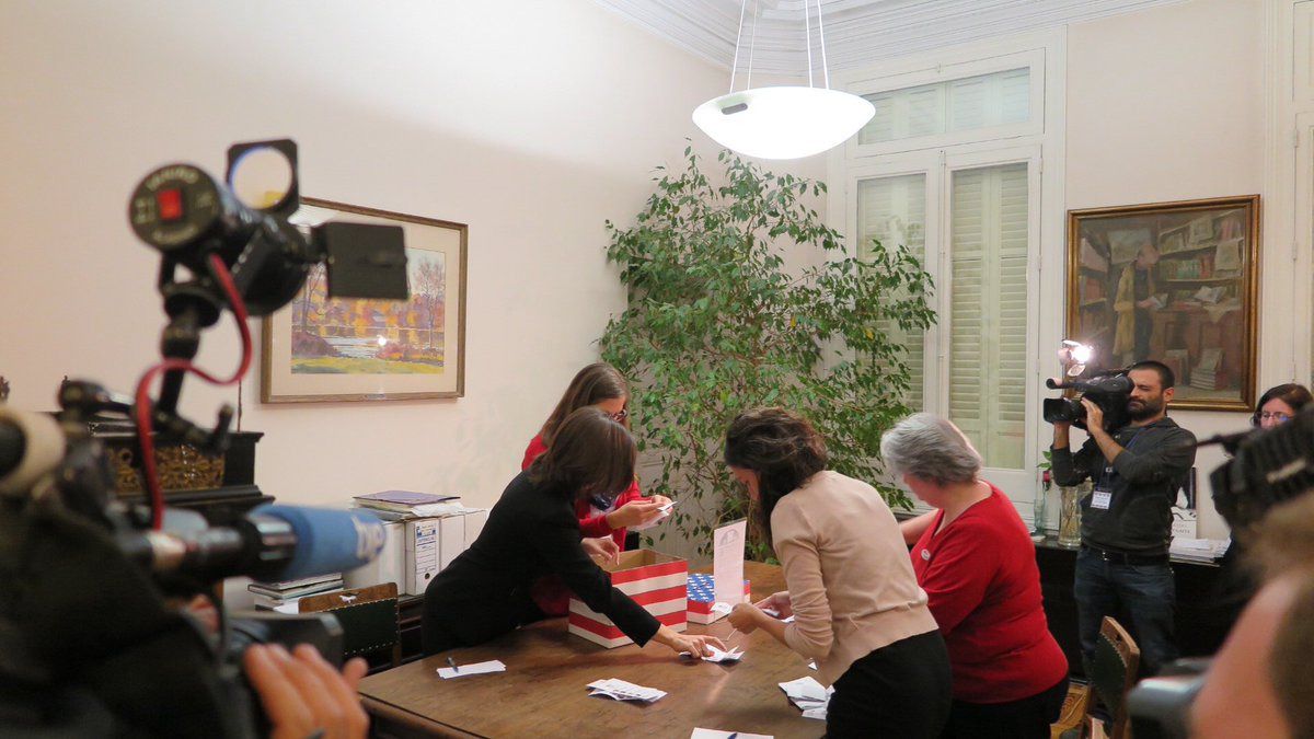 La Embajada de Estados Unidos en Madrid celebró la noche de este martes una fiesta para seguir las elecciones, de las finalmente Donald Trump ha salido ganador. Sin embargo, en la votación simbólica que realizó la Embajada, Hillary Clinton obtuvo una mayoría aplastante.