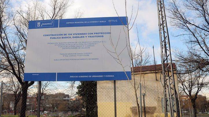 | Ecobarrio Vallecas, cartel EMVS promocion viviendas. (Archivo) (Foto: Juan Luis Jaén) |