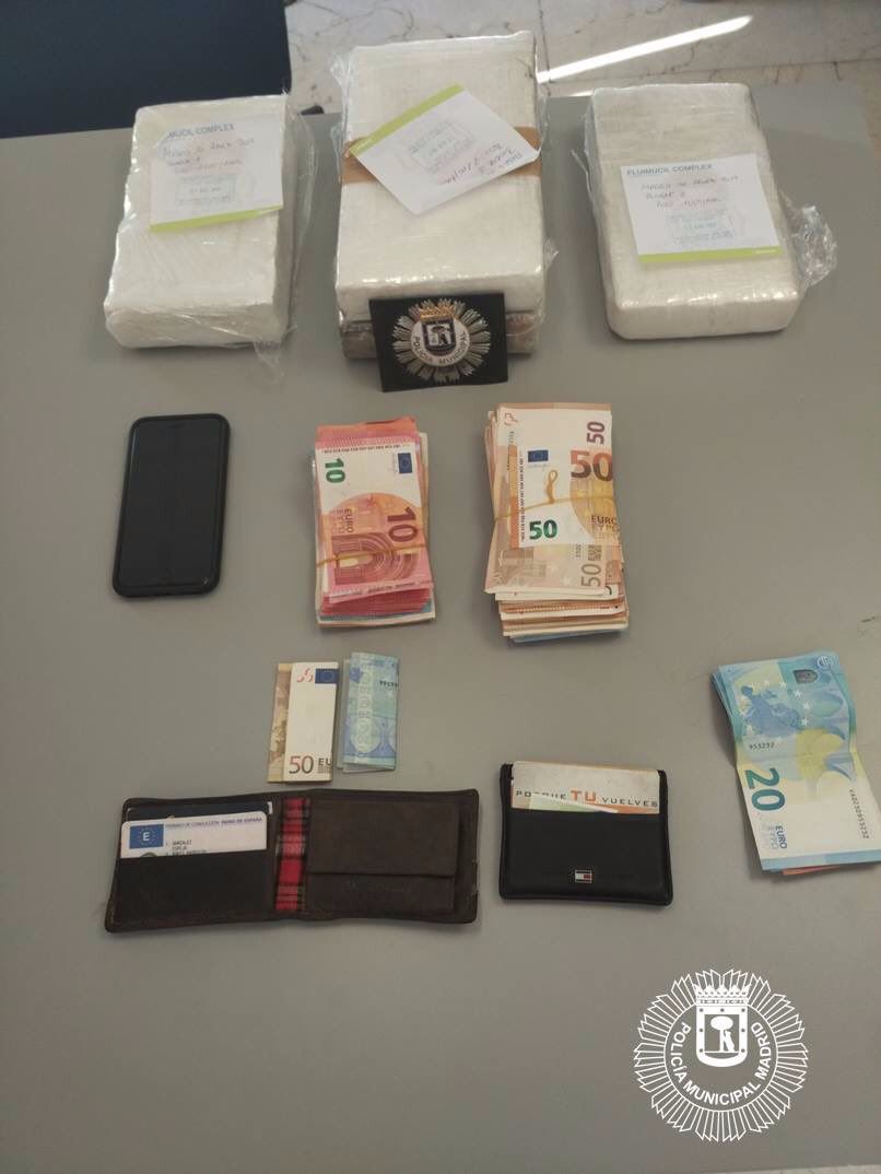Los policías inspeccionaron el vehículo y registraron a sus ocupantes, hallando en el interior de la mencionada bolsa un total de cuatro paquetes que contenían más de cuatro kilos de cocaína y 9.100 euros en efectivo. Posteriormente, la Policía Municipal solicitó una orden de entrada y registro del domicilio en el que se intervinieron otros 2.600 euros en efectivo, justificantes de transferencias bancarias por valor de 7.000, una caja de munición real de 50 proyectiles y una báscula de precisión.