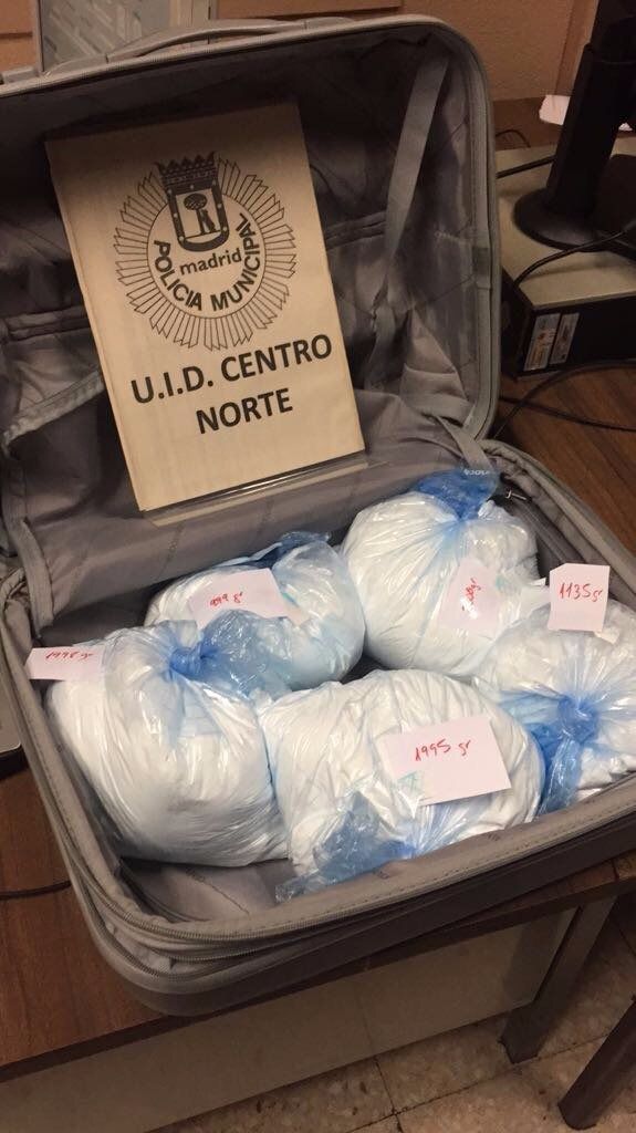 La policía municipal de Madrid ha detenido esta madrugada, y puesto a disposición judicial, a dos personas que transportaban en su vehículo 8 kilos de cocaína.