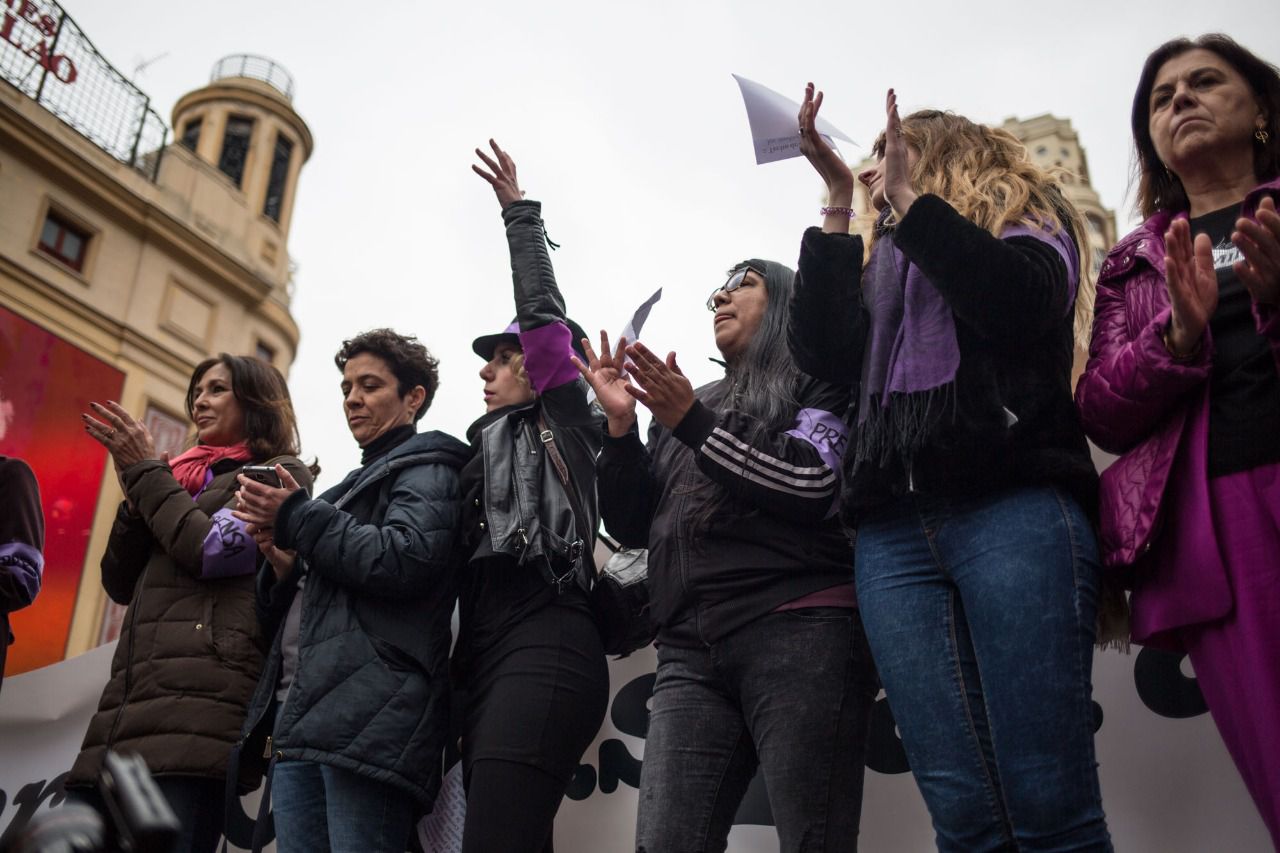 El manifiesto ha sido leído por ocho periodistas -Ana Requena, Lucía Méndez, Isabel Gemio, Mariola Lourido, Mercedes Domenech, Laura Campillo y Gabriela Wiener-, que en varios momentos se han visto interrumpidas por los aplausos de las cientos de personas que se habían concentrado en la Plaza de Callao y que han apoyado la lectura con reivindicaciones como "ni una menos", "no queremos" o "viva la lucha de las mujeres".