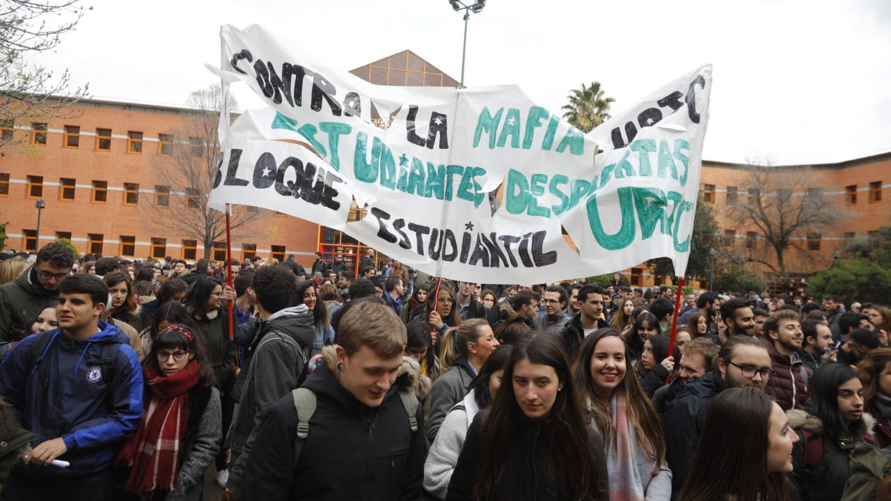 Una multitudinaria concentración de estudiantes ha recorrido las instalaciones de la Universidad Rey Juan Carlos (URJC) han reclamado la dimisión de la presidenta de la Comunidad de Madrid, Cristina Cifuentes, y el rector de la institución, Javier Ramos, por la polémica del máster de la regidora.