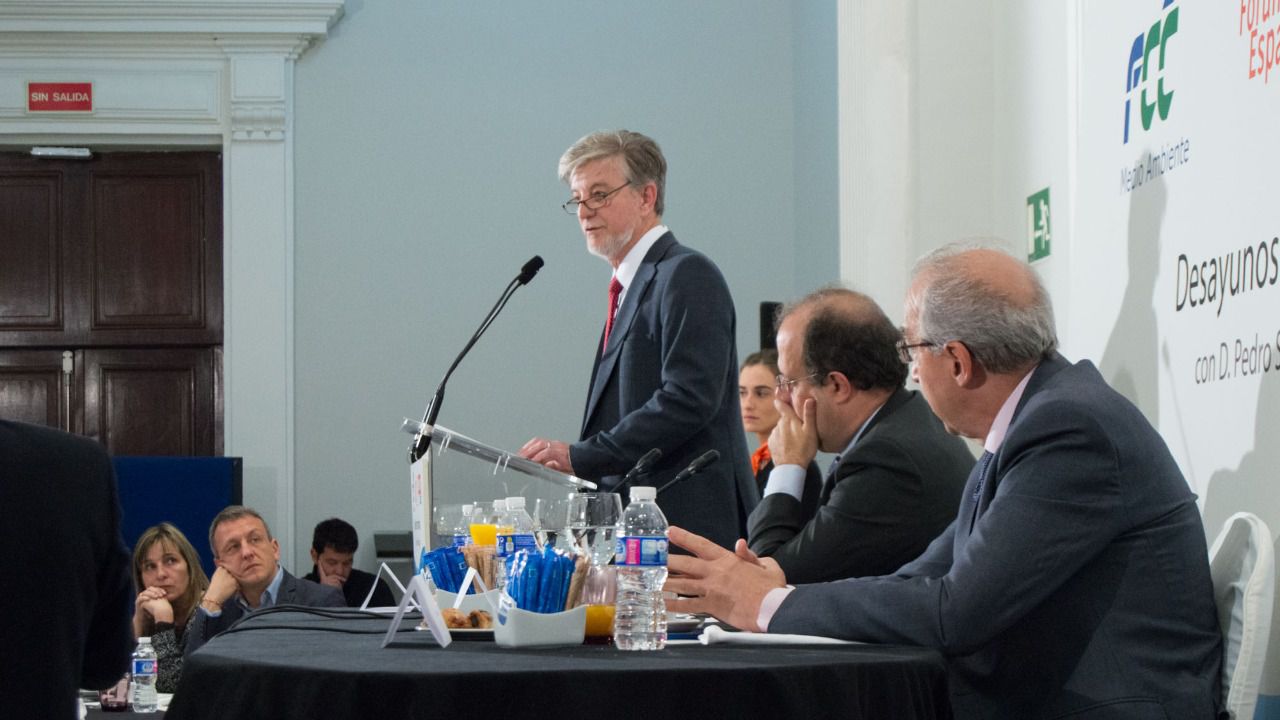 Pedro Santisteve, alcalde de Zaragoza, ha protagonizado un desayuno informativo organizado por FCC en Madrid. El regidor ha dibujado las líneas maestras del modelo económico deseable para las ciudades del futuro ante la presencia de representantes de la política municipal madrileña como Rita Maestre, Inés Sabanés o Carlos Sánchez Mato. En el evento se ha colado el conflicto catalán, cuya gestión por parte del Gobierno central parece "aberrante" al maño.
