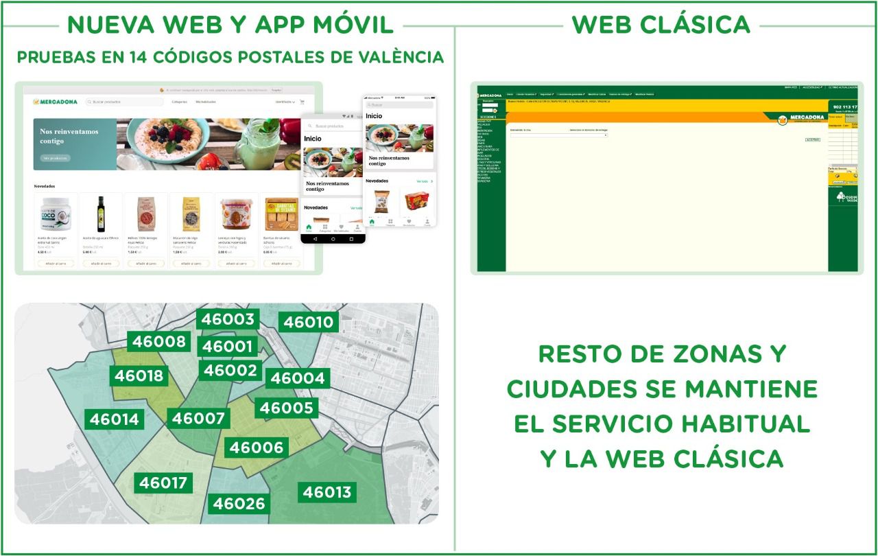 El objetivo del “Laboratorio” es probar el servicio y aprender, tanto con el trabajador como con el cliente online, para ir mejorándolo con sus aportaciones. Para este nuevo modelo, que convive con el servicio clásico en el resto de zonas y que mantiene la misma tarifa (7,21€/pedido), la compañía ha desarrollado una nueva web de compra y dos aplicaciones móviles (iOS y Android). Todos los clientes de Mercadona, independientemente de la zona en la que residan, podrán acceder a la nueva tienda online, pero sólo aquellos en los códigos postales del centro de València, podrán realizar su compra con el nuevo servicio.