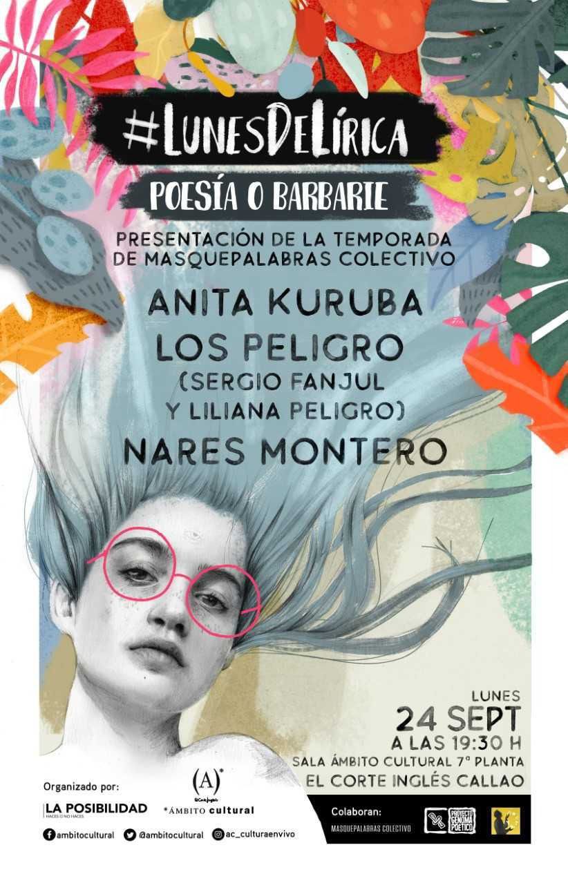 Este lunes en la sala de Callao, estará en el acto inaugural el colectivo Más que Palabras que presentará su nuevo proyecto para esta temporada. Ha sido catalogado por la crítica como la modalidad de poesía escénica más fresca, dinámica y exitosa de Madrid. Actuarán los poetas Nares Montero, que representa la nueva poesía feminista y acaba de ganar un premio con la editorial de Elena Medel, Sergio Fanjul, que es artista ya consagrado y Anita Kuruba, que fue vocalista de Canteca de Macao y acaba de sacar nuevo disco.