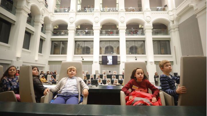El salón de Plenos del Palacio de Cibeles ha abierto sus puertas a los más pequeños para que expongan sus peticiones al Ayuntamiento de Madrid. En la iniciativa han participado 69 niños, que han trasladado a la teniente alcalde de la capital, Marta Higueras, y a concejales de otros grupos políticos su prioridad por mejorar la limpieza, la seguridad y la accesibilidad en la ciudad.