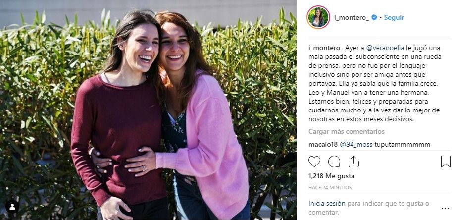 Irene Montero, embarazada de una niña