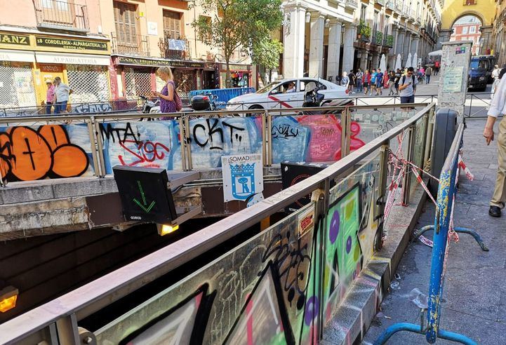 Los accesos al recinto histórico no presentan mejor aspecto. Especialmente lamentable es de la calle de Toledo. Allí existe una valla de metacrilato que protege a los peatones de la entrada al paso subterráneo. Ese material no permite ningún tipo de restauración. Hace años que los grabados y las pintadas se apoderaron de la valla. Hace unas semanas se produjo la rotura de uno de los paneles. Está protegido por una simple cinta aislante y una valla. La imagen que se tiene de la Plaza Mayor desde allí es impagable.