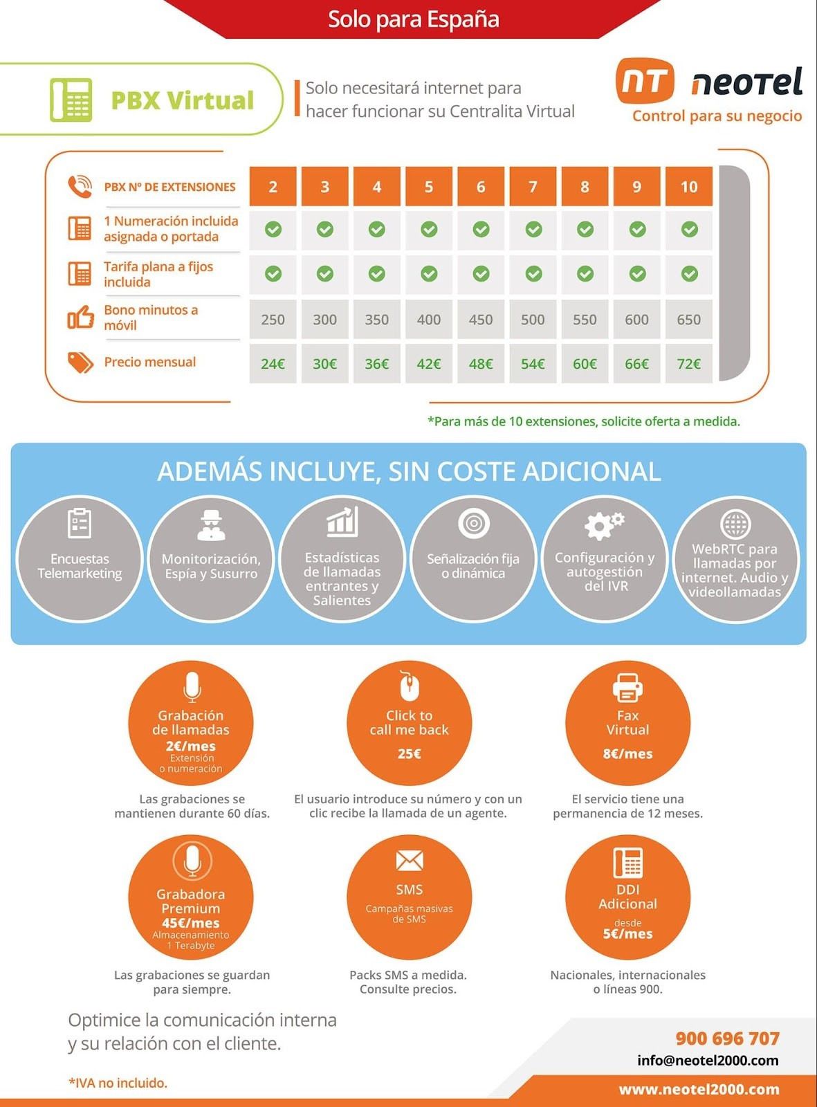 Algo muy interesante es que se puede contar con tantas extensiones como uno crea que es necesario, de tal manera que la centralita virtual va a permitir una mejor gestión de todo el sistema de telefonía que tenga la empresa.