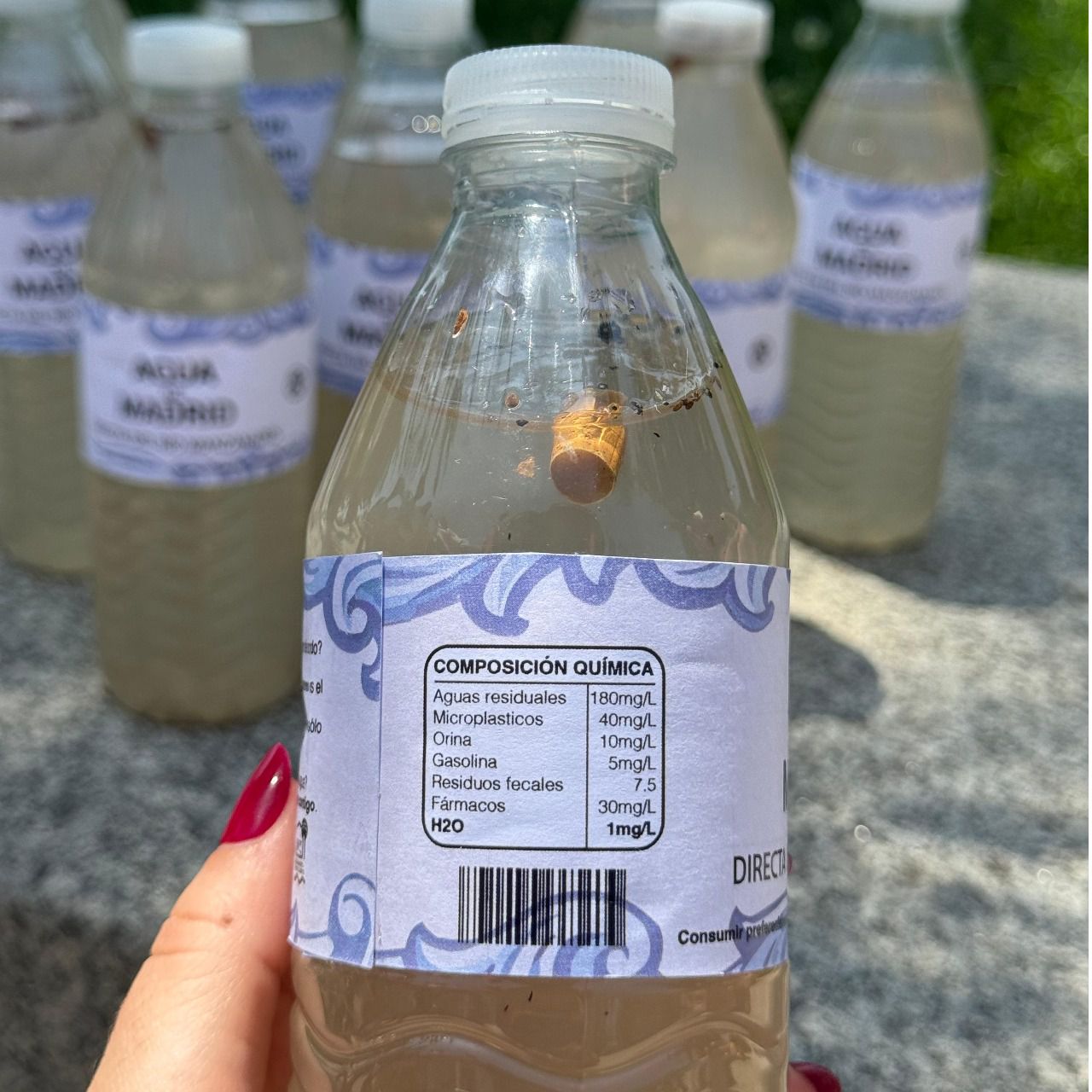Las botellas, diseñadas con estética madrileña, se han inspirado en las tradicionales baldosas de bar. Y llevan un mensaje de concienciación en sus etiquetas: 'Agua de Madrid, directa del Río Manzanares' con una tabla en la parte trasera con sus componentes, como aguas residuales, microplásticos, orina, gasolina, residuos fecales o fármacos. “Queríamos que la gente lo leyera al encontrarse con la botella tirada, como algo inesperado que les haga reflexionar”, han explicado.