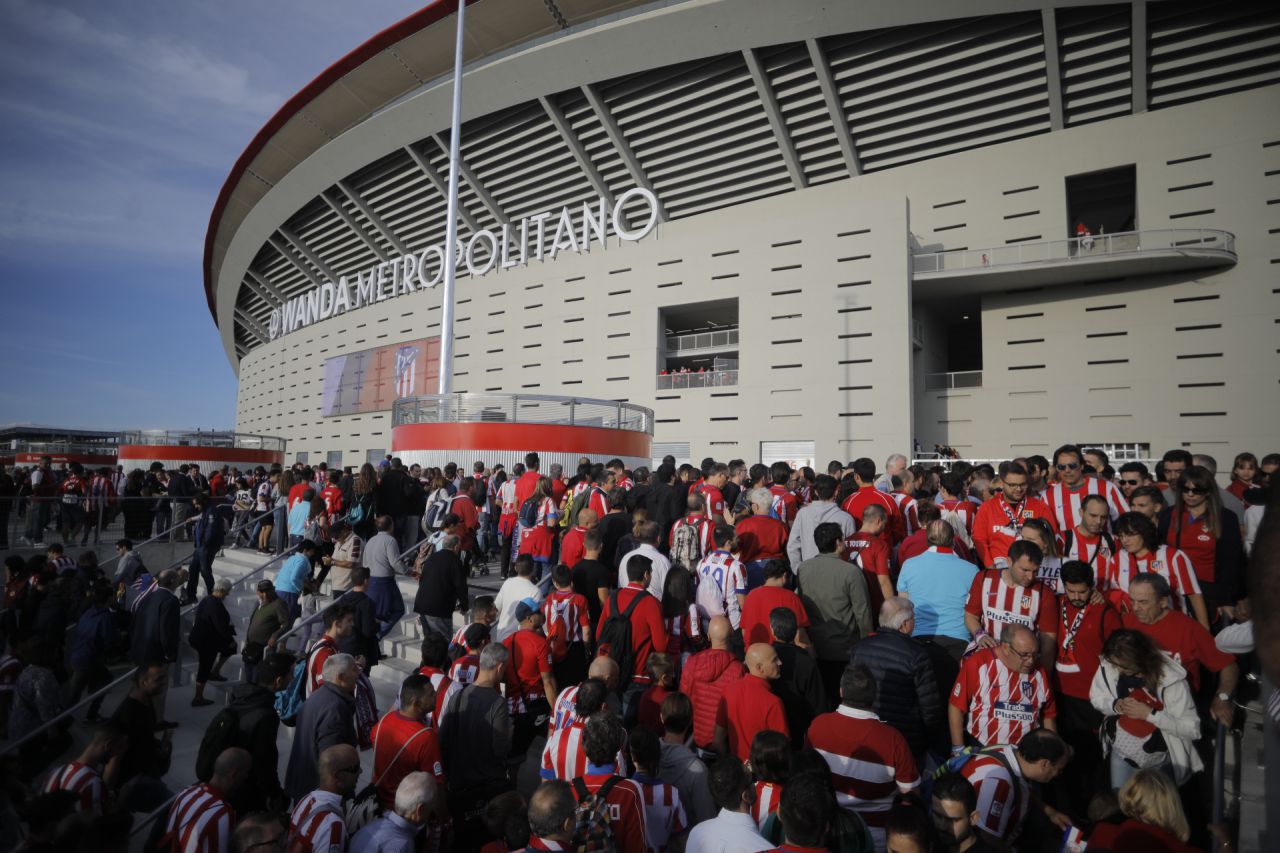 Momentos antes de abrir las puertas del esperado estadio Wanda Metropolitano, sede del Atlético de Madrid, la afición llegaba en transporte público y privado para disfrutar del ambiente y los actos previos a la ceremonia de inauguración. Así se ha vivido esta tarde de emociones.