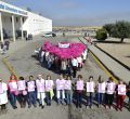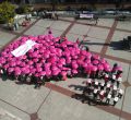 Gigantescas gotas humanas formadas a base paraguas o globos rosas se han formado este jueves en varios municipios de la región para conmemorar el Día Internacional Contra el Cáncer de Mama, que afect a 1 de cada 8 mujeres en España.