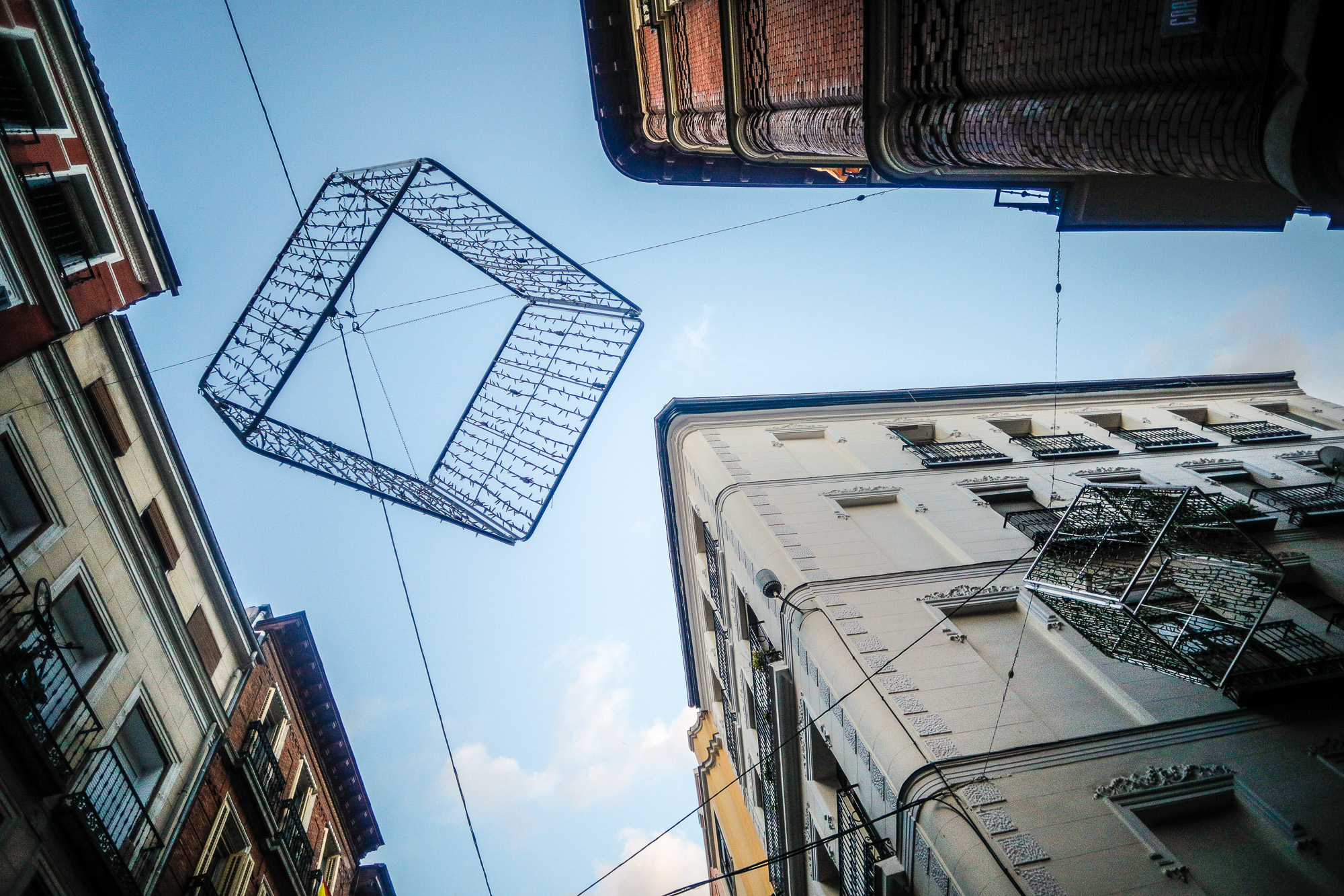 Ya ha comenzado la instalación de las luces navideñas en el distrito Centro. La Puerta del Sol y las calles que emanan de ella han sido las primeras en vestirse de navidad.