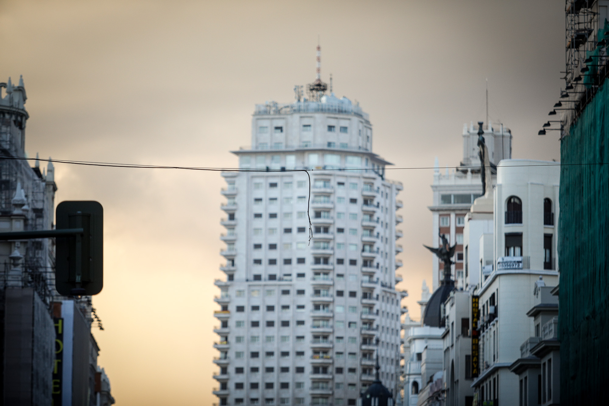 Cables para sustentar las luces de navidad en la Gran Vía.