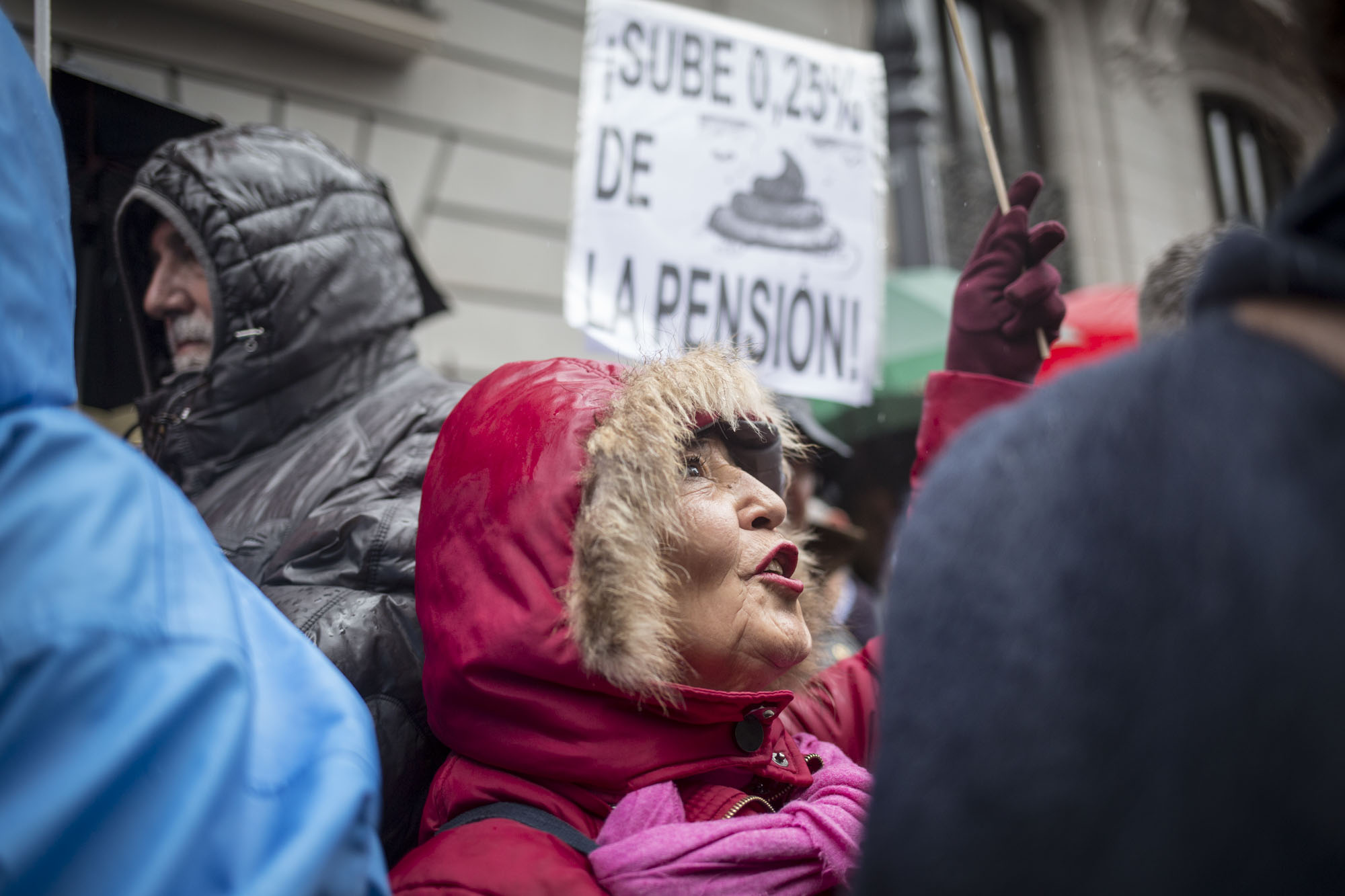Una multitudinaria manifestación, con la gran mayoría de asistentes jubilados, ha abarrotado este jueves la calle Alcalá, donde se encuentra la sede del Ministerio de Hacienda, para protestar contra la "escasa" subida de las pensiones del 0,25 por ciento que se ha pactado para este año. La lluvia no ha desanimado a los concentrados. (1818 visitas)
