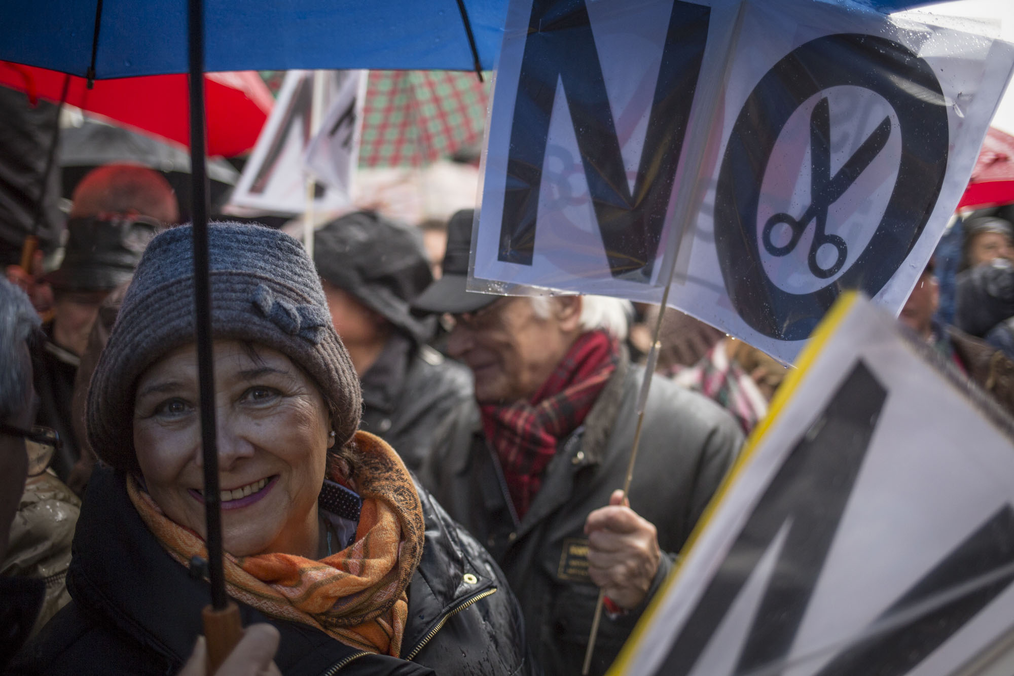 Una multitudinaria manifestación, con la gran mayoría de asistentes jubilados, ha abarrotado este jueves la calle Alcalá, donde se encuentra la sede del Ministerio de Hacienda, para protestar contra la "escasa" subida de las pensiones del 0,25 por ciento que se ha pactado para este año. La lluvia no ha desanimado a los concentrados. (1818 visitas)