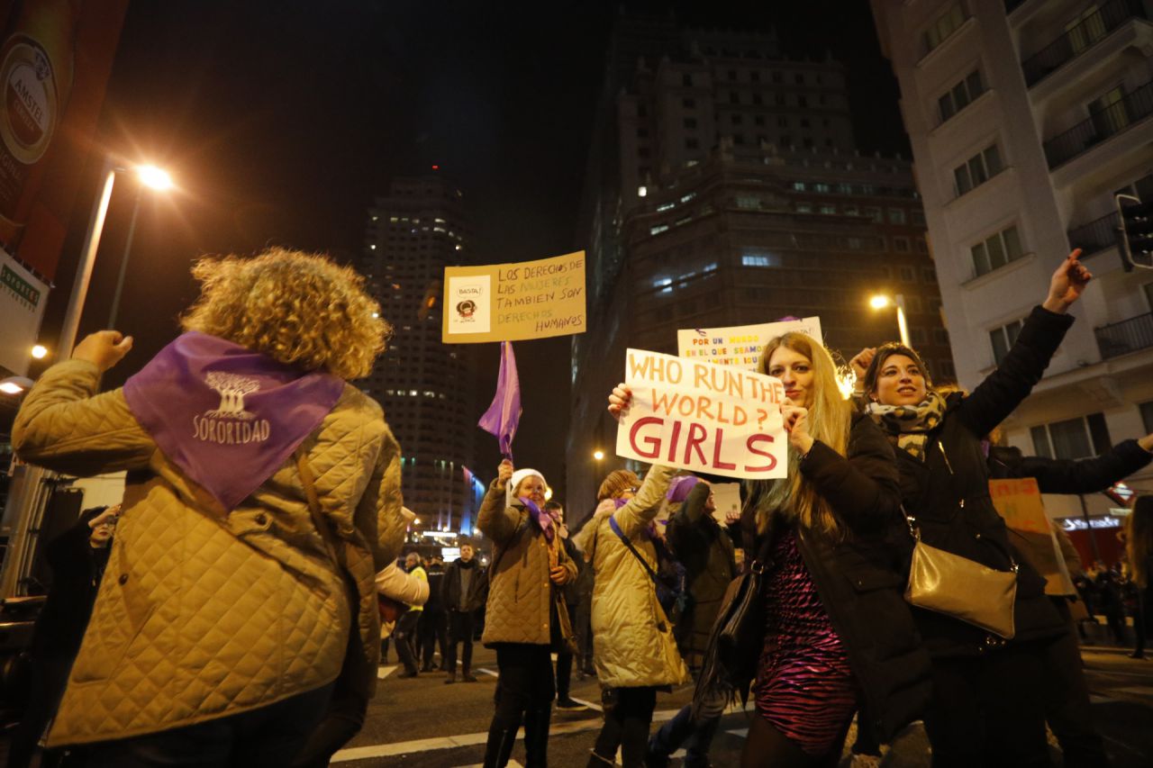 Las protestas feministas de este jueves, Día Internacional de la Mujer, concluyen con una gran manifestación que recorre las principales calles de Madrid.