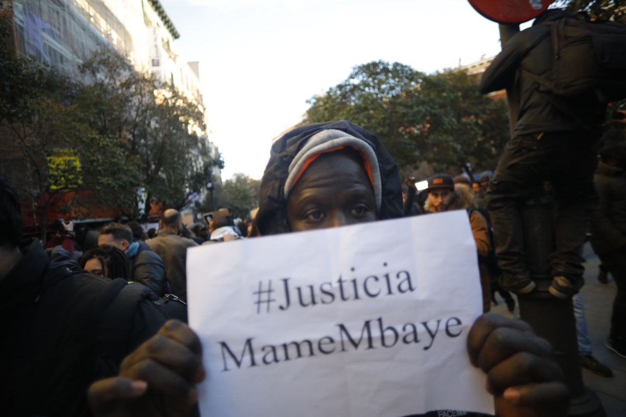 La plaza de Nelson Mandela, en el barrio de Lavapiés, se ha llenado esta tarde de manifestantes que han reclamado "justicia" por la muerte del ciudadano senegalés Mame Mbade, que sufrió una parada cardiorrespiratoria, al tiempo que han reclamado que "ningún ser humano es ilegal".