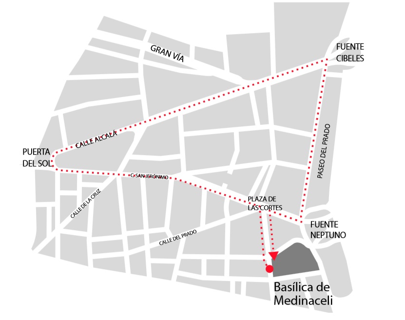 Jesús Nazareno de MedinaceliVIERNES SANTO - 19 horas Imágenes: Nuestro Padre Jesús Nazareno (Anónimo, s. XVII). Nuestra Señora de los Dolores en su Mayor Soledad (Rafael García Irurozqui, 1948). Organización: Archicofradía Primaria de la Real e Ilustre Esclavitud de Nuestro Padre Jesús Nazareno de Medinaceli. Acompañamiento musical: Banda de Música de la Asociación Musical La Lira de Pozuelo (Madrid), en el Cristo, la Banda de Cornetas y Tambores Virgen Morena de Ocaña (Toledo).