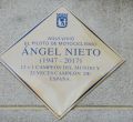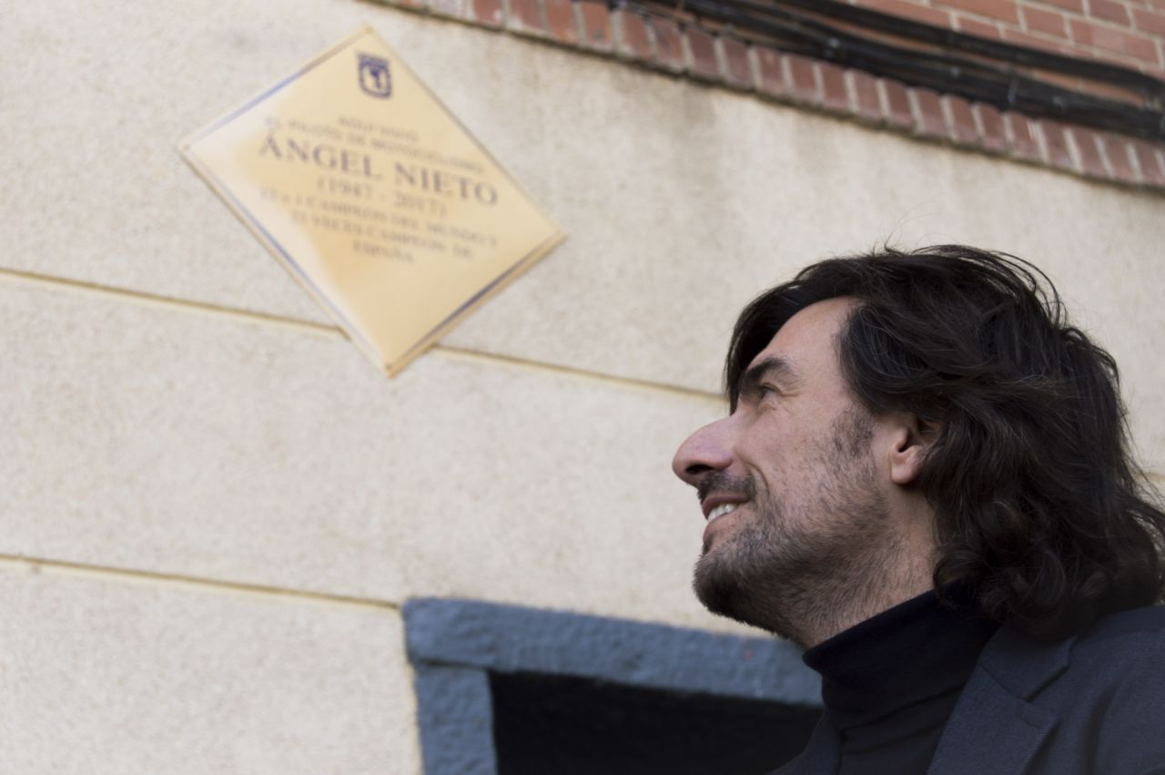 En homenaje al piloto fallecido Ángel Nieto, este jueves se ha descubierto una placa situada en su casa de Vallecas donde vivió durante gran parte de su vida. Al acto, además del concejal-presidente de Vallecas, Paco Pérez, han acudido varios familiares de Nieto como su hijo 'Gelete', su sobrino Fonsi Nieto, sus hermanos y su primera mujer.