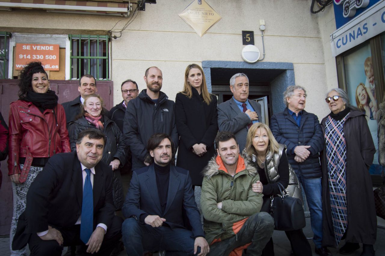 En homenaje al piloto fallecido Ángel Nieto, este jueves se ha descubierto una placa situada en su casa de Vallecas donde vivió durante gran parte de su vida. Al acto, además del concejal-presidente de Vallecas, Paco Pérez, han acudido varios familiares de Nieto como su hijo 'Gelete', su sobrino Fonsi Nieto, sus hermanos y su primera mujer. (3496 visitas)