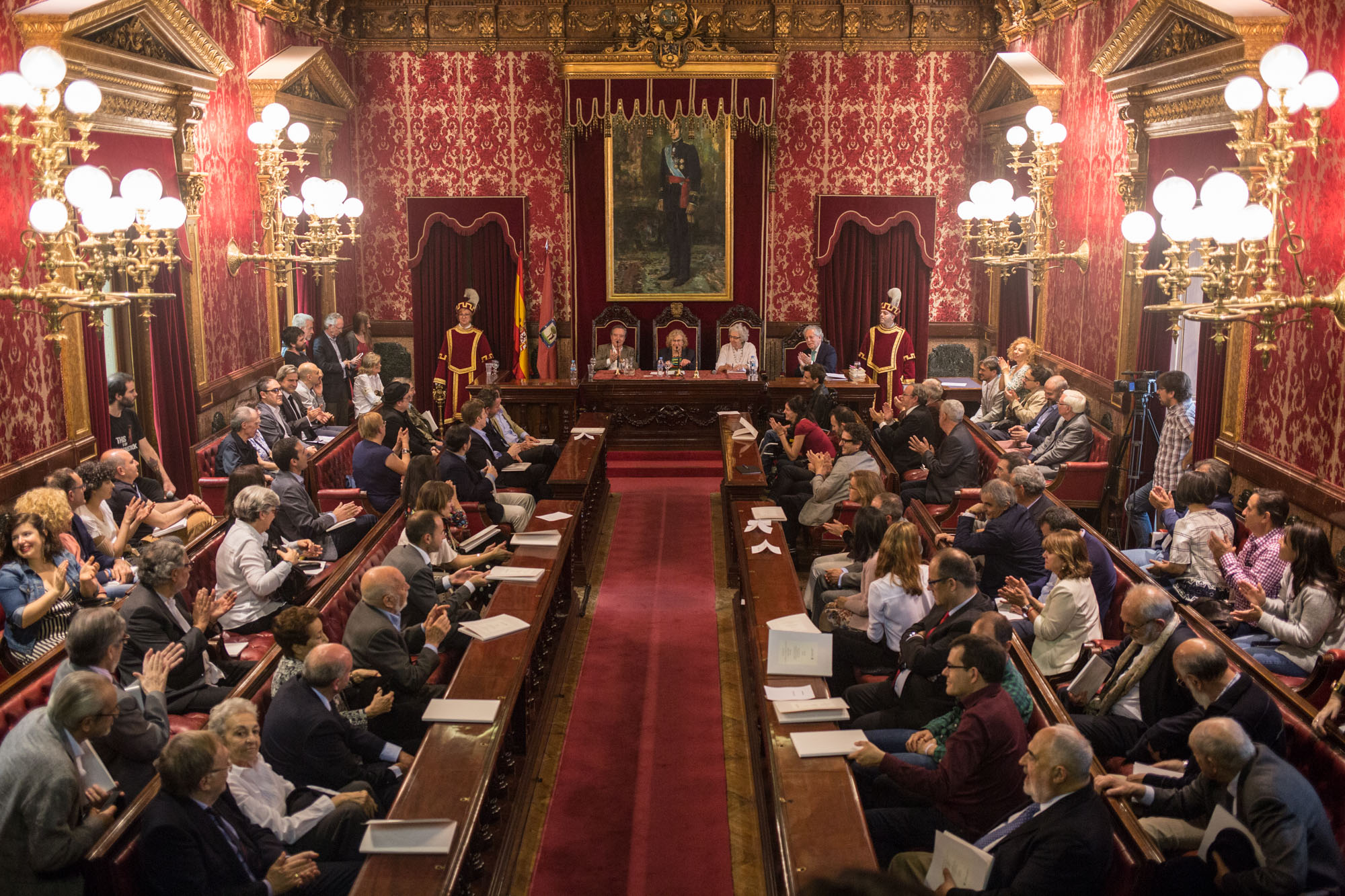 Este jueves, Madrid ha viajado en el tiempo hasta el 19 de abril de 1979, día en el que ante la presencia de 59 concejales, se celebró el Pleno de Investidura del alcalde Enrique Tierno Galván. La Casa de la Villa ha acogido una lectura dramatizada como acto por la celebración de los 100 años del 'Viejo Profesor'.