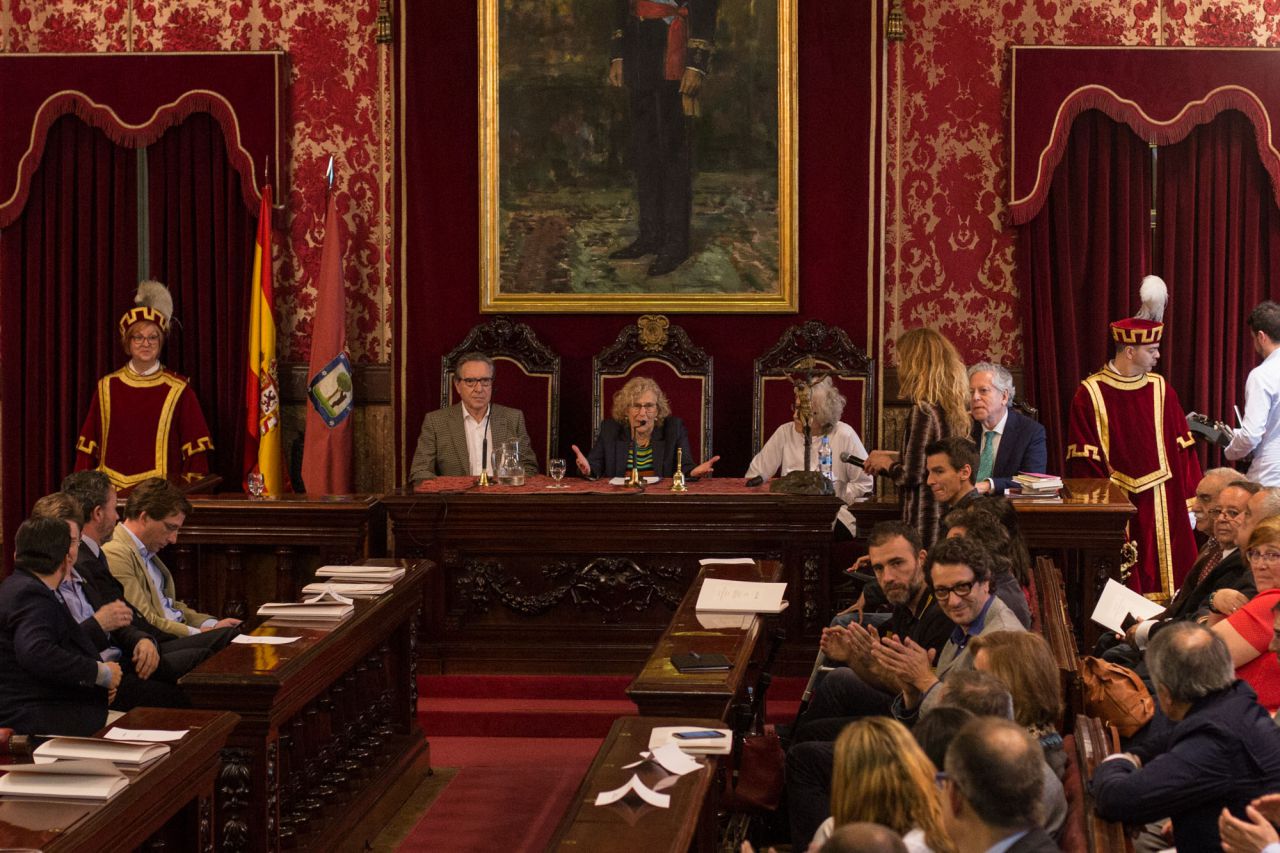 Este jueves, Madrid ha viajado en el tiempo hasta el 19 de abril de 1979, día en el que ante la presencia de 59 concejales, se celebró el Pleno de Investidura del alcalde Enrique Tierno Galván. La Casa de la Villa ha acogido una lectura dramatizada como acto por la celebración de los 100 años del 'Viejo Profesor'.