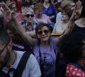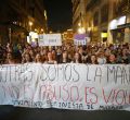 Así, coreando cánticos como "si no estamos muertas no nos creen", "la manada somos nosotras", "uno de ellos era picoleto", "vergüenza, vergüenza", "jueces machistas fuera del juzgado", "sola, borracha quiero llegar a casa" , "no es un caso aislado, se llama patriarcado" o "justicia de mierda le estáis juzgando a ella", la calle San Bernardo se ha llenado desde el Ministerio hasta el cruce con Alberto Aguilera.