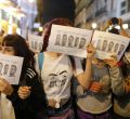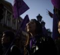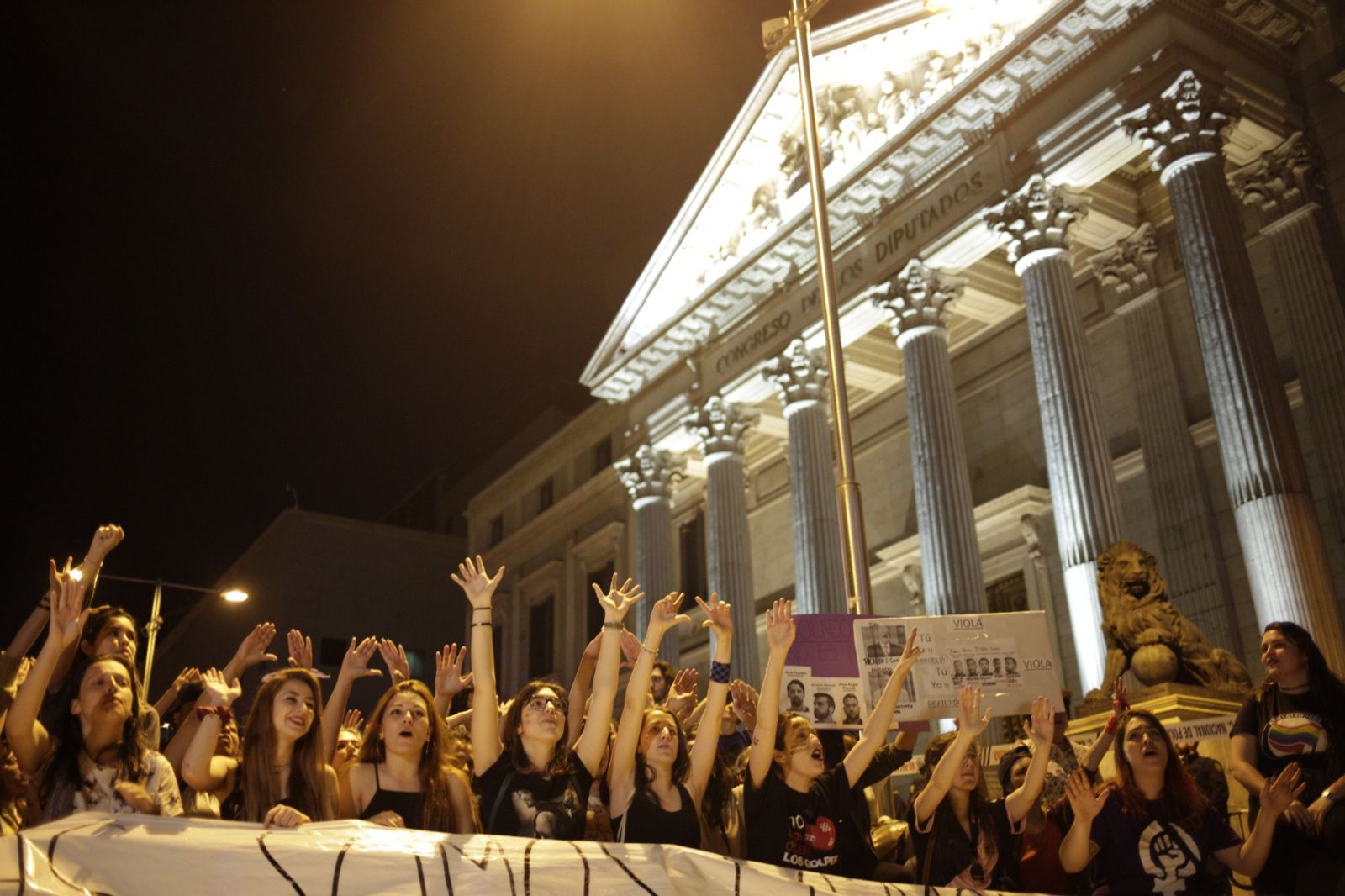 Colectivos feministas se han concentrado este jueves 26 de abril frente al ministerio de Justicia en Madrid convocados por el Movimiento Feminista de Madrid para protestar contra la sentencia "injusta" e "insuficiente" de la Audiencia de Navarra por el caso de 'La Manada'.