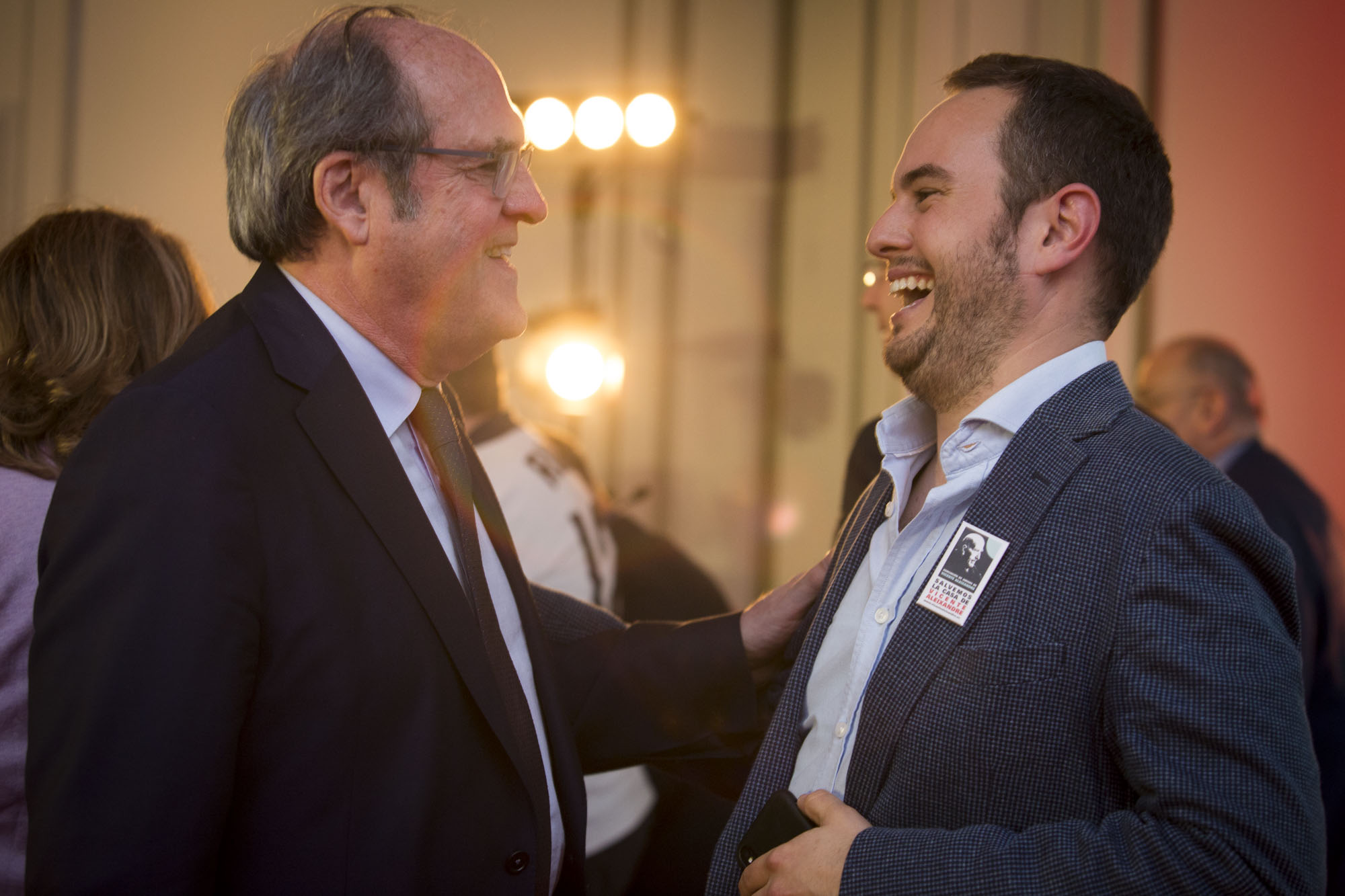 El portavoz del PSOE-M en la Asamblea de Madrid, Ángel Gabilondo con el mago Jorge Blass.