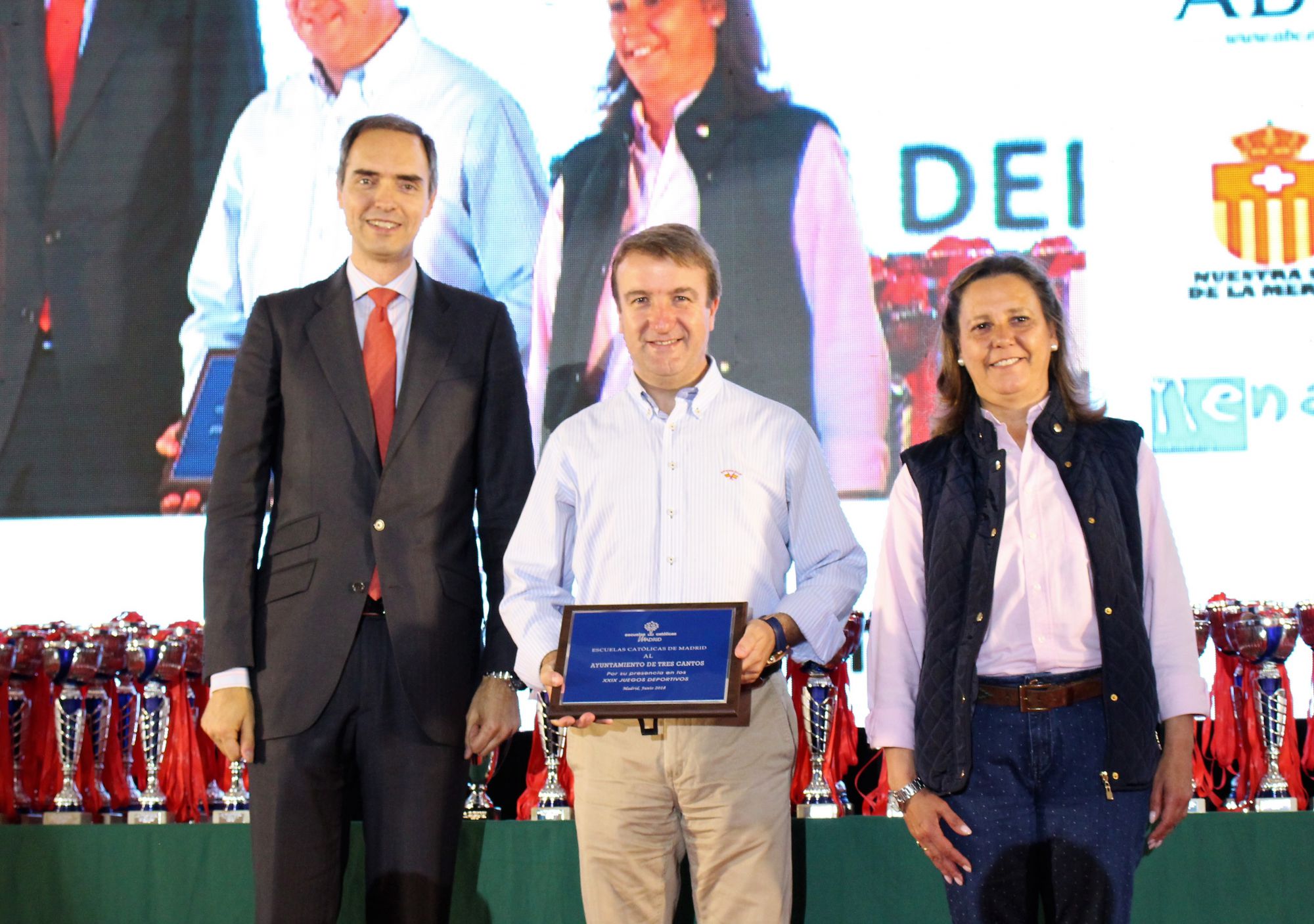 La jornada de clausura de los XXIX Juegos Deportivos de Escuelas Católicas de Madrid demostró, un año más, ser uno de los referentes del ámbito deportivos en las escuelas de la región. De nuevo, el polideportivo del Colegio Nuestra Señora de la Merced en Tres Cantos fue el escenario de la entrega de copas que concedió la institución educativa y que reunió a centenares de padres, madres, familiares y amigos, que junto a los multitudinarios alumnos de distinos colegios, disfrutaron de un acto que ya se considera como la gran fiesta del deporte madrileño a nivel escolar.
