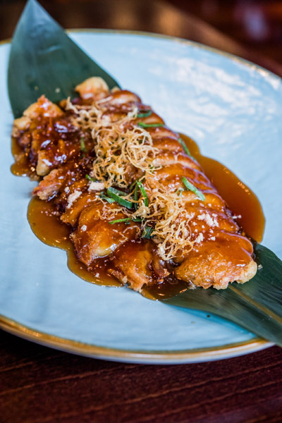 Pato Shanghai mama crujiente en salsa de almendras