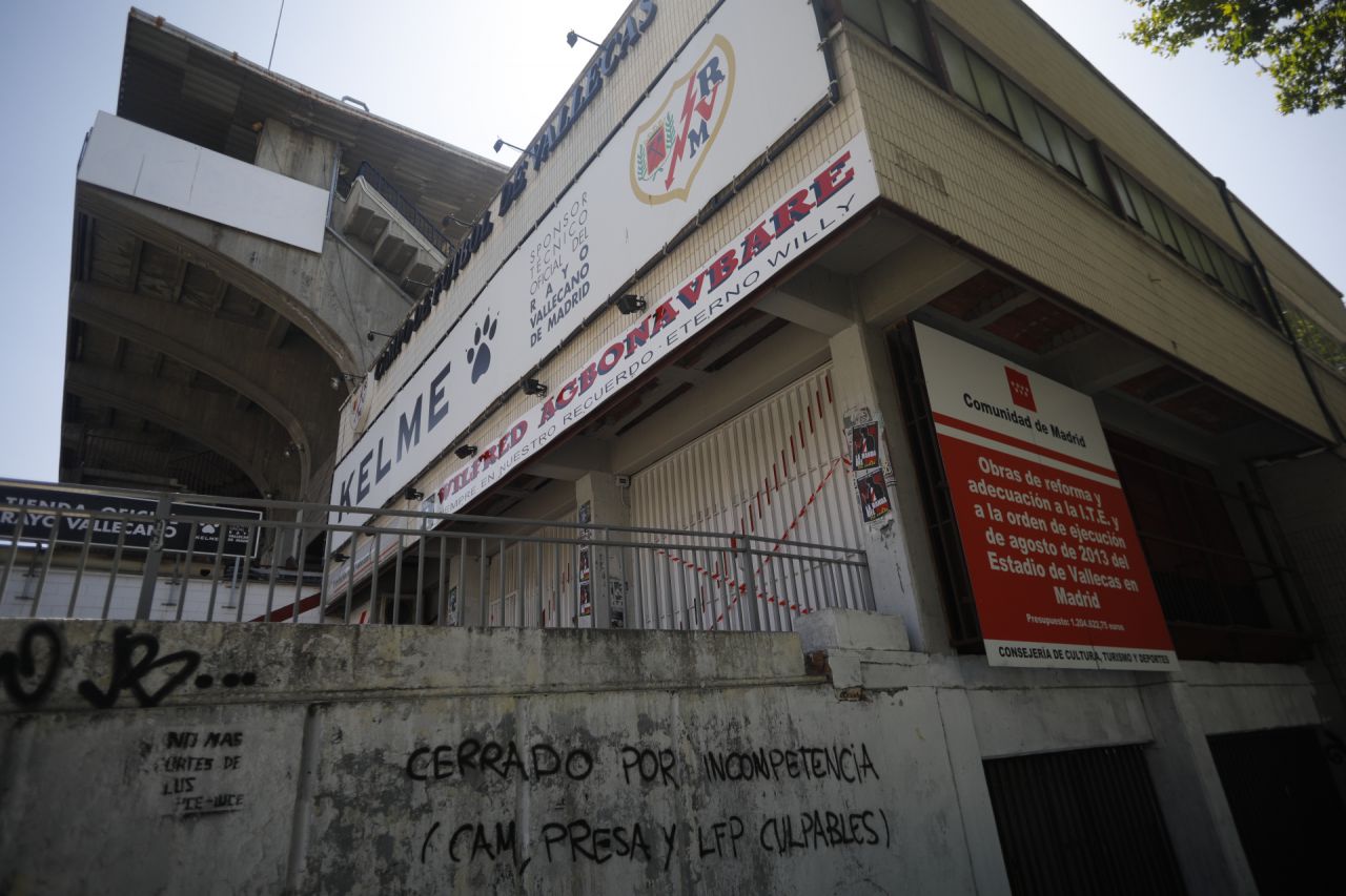 El cierre repentino por obras de mejora del Estadio de Vallecas ha provocado la indignación de algunos aficionados. Las instalaciones han amanecido este martes con pintadas contra la Comunidad de Madrid, la Liga y el presidente del Rayo, Raúl Martín Presa, por la "inseguridad" y la falta de mantenimiento del inmueble.