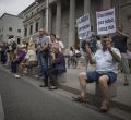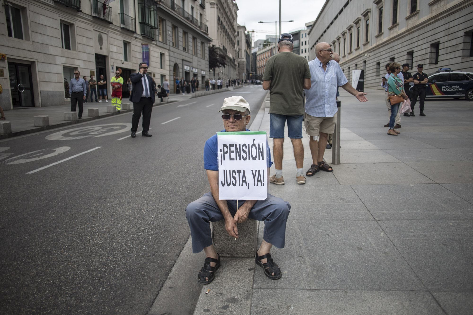 La protesta de los pensionistas de este miércoles ha logrado llegar hasta la puerta de Los Leones del Congreso de los Diputados después de que la pasada semana se produjeran escenas de tensión al prohibirles el paso el cordón policial.