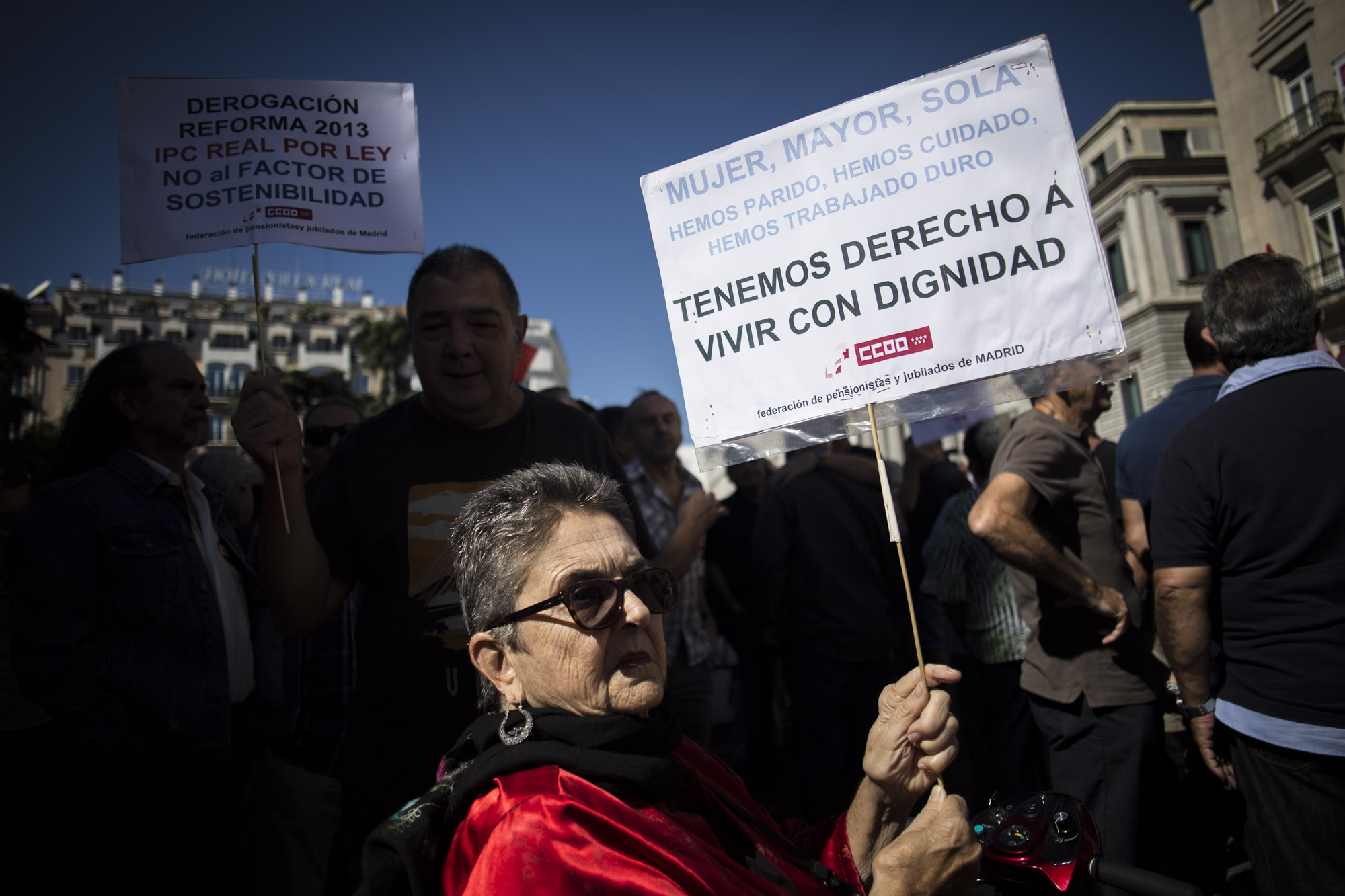De nuevo, cientos de pensionistas se manifiestan ante las puertas del Congreso con una petición unánime: que la revalorización del IPC sea real. Los jubilados reclaman, en un manifiesto entregado por los líderes sindicales, la activación de una serie de medidas que garanticen la sostenibilidad de las pensiones e implantar de manera completa, la Ley de Dependencia.