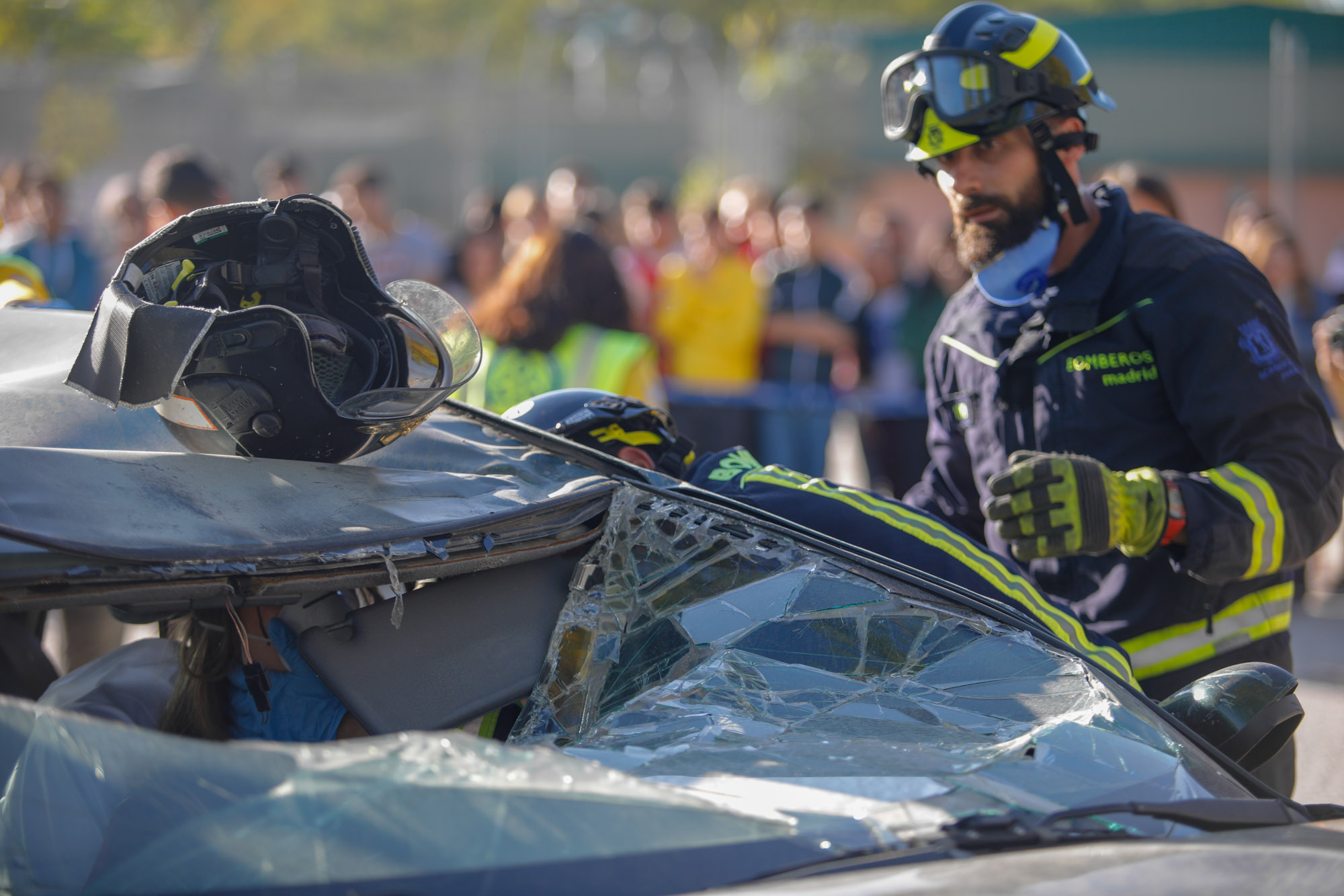 Un total de 600 profesionales de los servicios de emergencias se ponen a prueba en un simulacro de un accidente de tráfico en la M-203 a la altura de Rivas-Vaciamadrid. El acto, promovido por la Comunidad, fue presidido por el presidente Ángel Garrido.