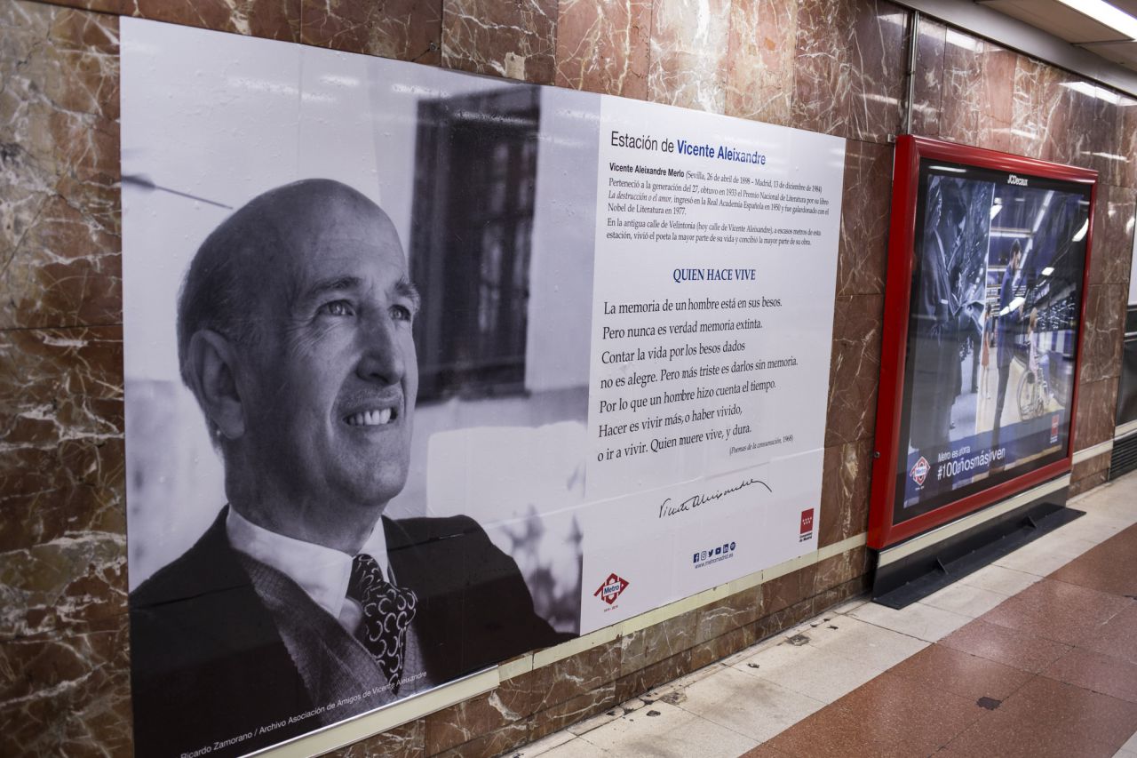 La estación de Metro de Madrid Metropolitano, en la línea 6, cambia su denominación por Vicente Aleixandre desde el próximo sábado. Además de un homenaje al autor, la modificación pretende zanjar la confusión con la parada Estadio Metropolitano -línea 7-, que llega hasta el campo del Atlético de Madrid.