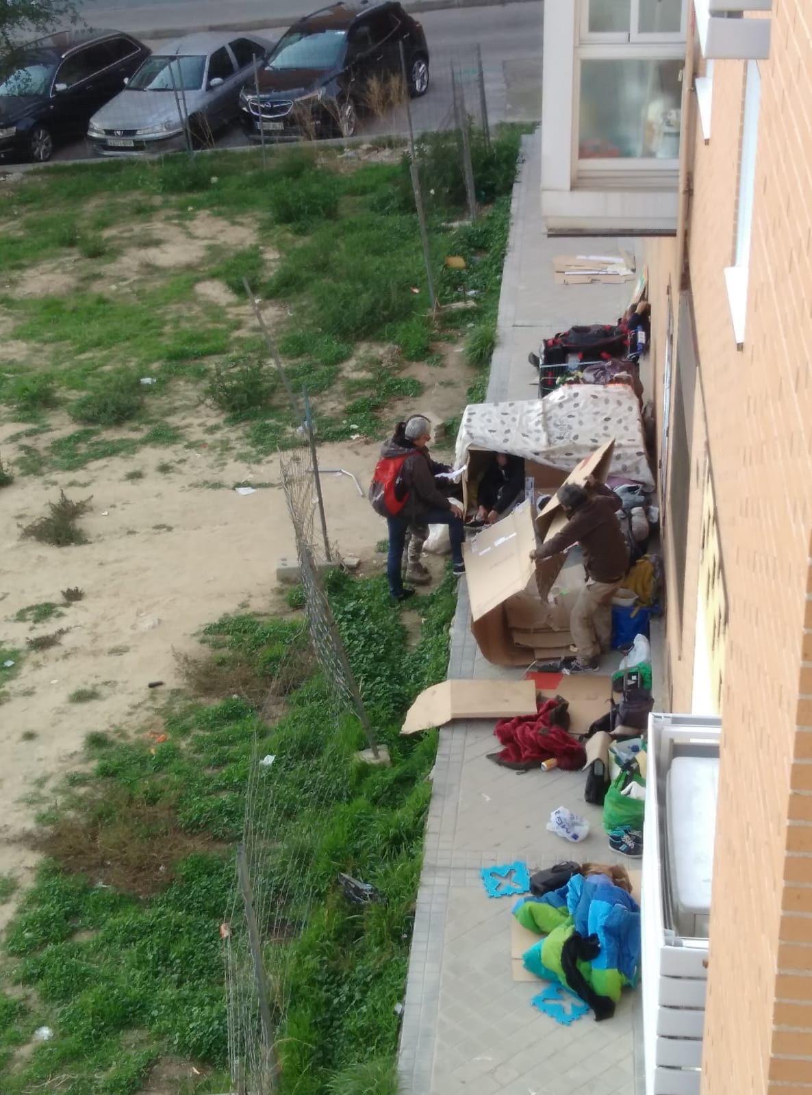 El mismo día del desalojo, el martes, los migrantes se instalaron junto a un edificio de viviendas.