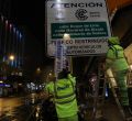 Los operarios preparan las señales antes de la puesta en marcha de Madrid Central