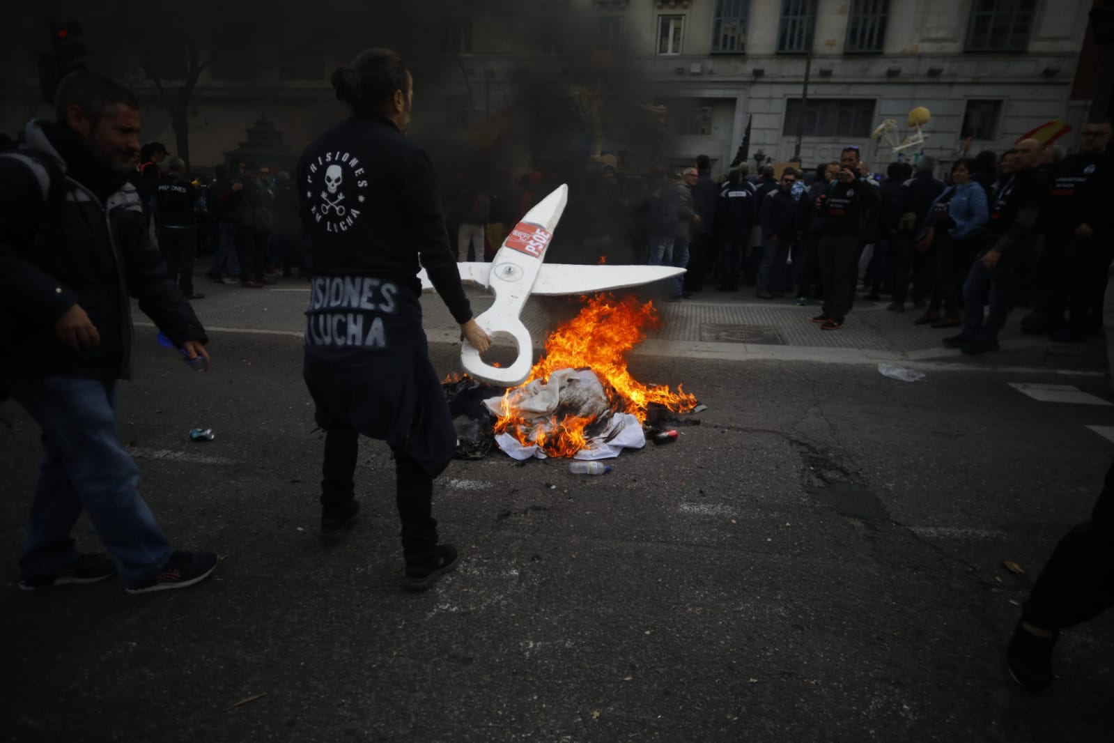 Hasta 6.000 funcionarios de prisiones de toda España han participado en una agitada manifestación en Madrid. Los asistentes han recorrido las sedes de los principales partidos para trasladarles la necesidad de incorporar 3.500 nuevos efectivos, eliminar las diferencias salariales o aumentar su retribución.
