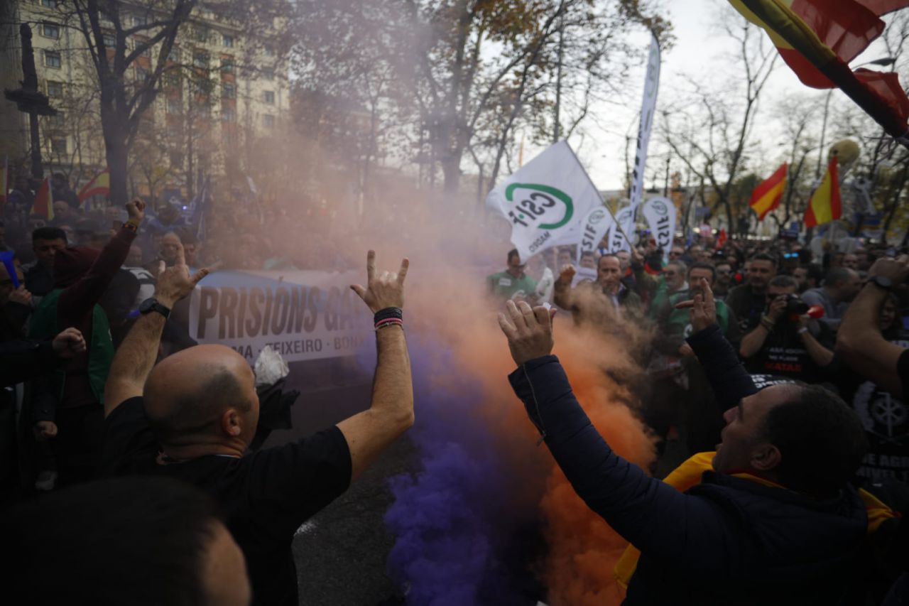 Hasta 6.000 funcionarios de prisiones de toda España han participado en una agitada manifestación en Madrid. Los asistentes han recorrido las sedes de los principales partidos para trasladarles la necesidad de incorporar 3.500 nuevos efectivos, eliminar las diferencias salariales o aumentar su retribución.