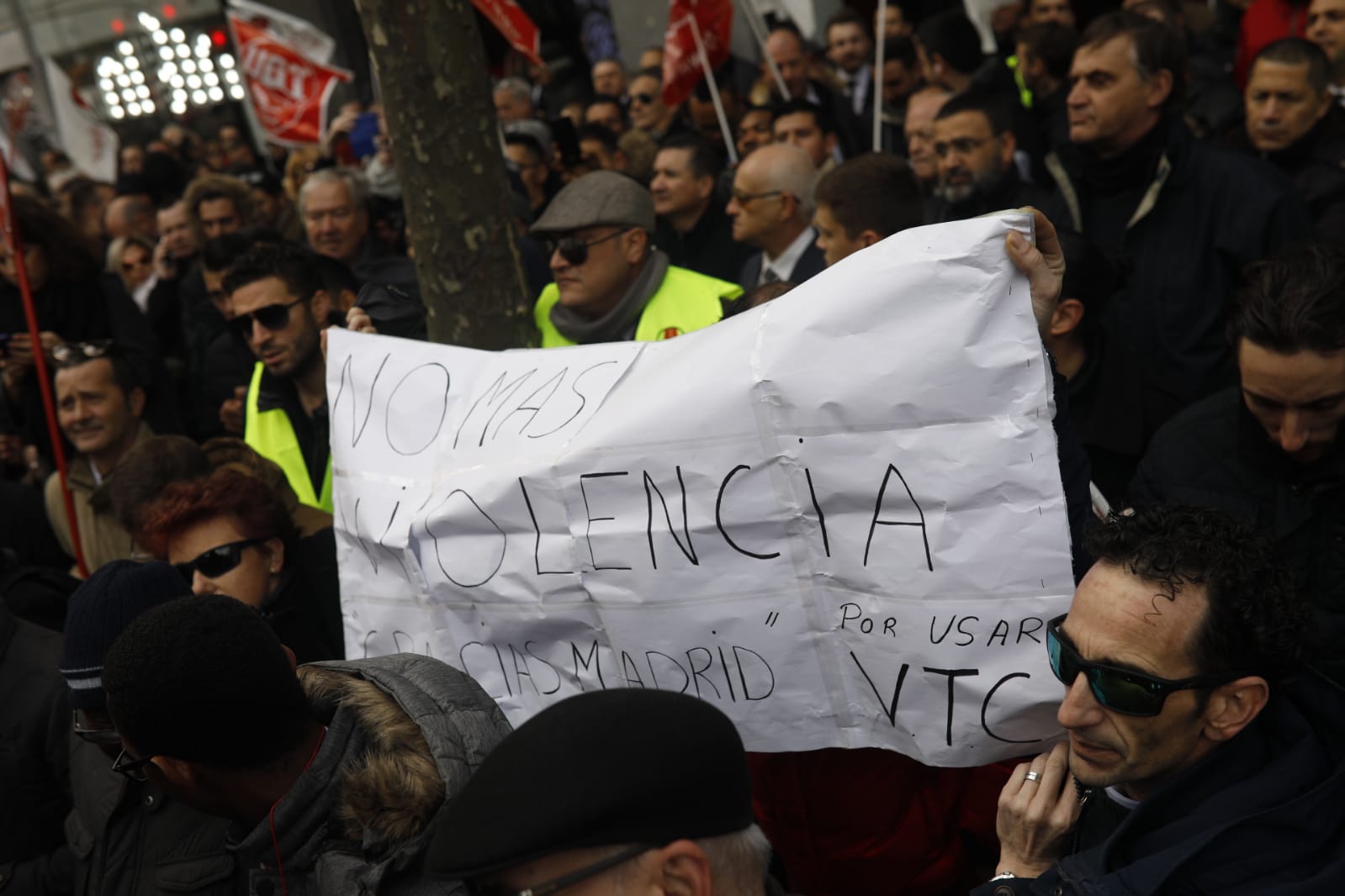 Los conductores de VTC también salen a la calle. Después de nueve días de huelga de los taxistas, en los que varias manifestaciones han cortado carreteras y calles, los trabajadores de los coches con conductor se han concentrado frente a la sede de Podemos en la calle Princesa y junto a la del PSOE en Ferraz para reivindicar su trabajo y pedir "seguridad".