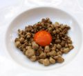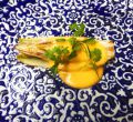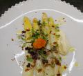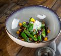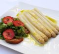 Espárragos verdes con avellanas y calabaza