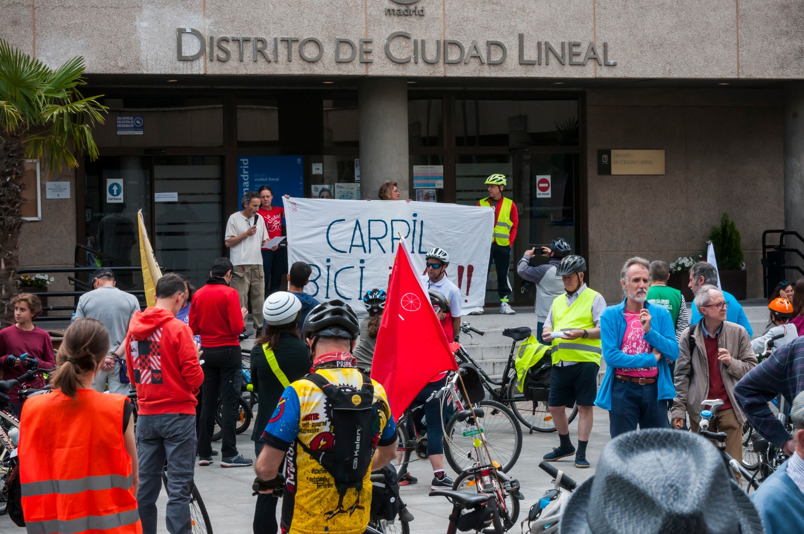 A las 11:00 de este domingo, más de 350 personas se han acercado a la Junta de Distrito de Ciudad Lineal para participar en el paseo reivindicativo por un carril bici en las avenidas del distrito Arturo Soria e Institución Libre de Enseñanza, petición que los vecinos llevan haciendo desde hace 14 años.